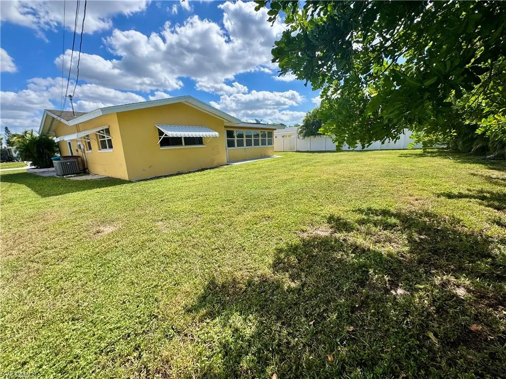 Come view this home in the heart of SE Cape Coral! Minutes away from plenty of shopping and dining options. Home features an open layout of 3 bedrooms and 2 bathrooms with tile throughout. Not to mention has been freshly painted inside. Washer and dryer are included as well. The backyard is very spacious and the rent includes lawn care!