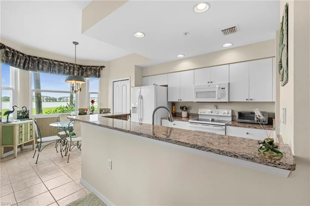This first-floor Brookside model condo perfectly blends comfort, style, and convenience, featuring two bedrooms, two bathrooms, and being sold turnkey furnished so you can move right in and start enjoying resort living from day one. Step inside to a bright, open layout that draws your eyes to the spectacular lake and 18th-hole views of the Sable Course, visible from both the kitchen and living room. Impact-resistant windows and large sliding glass doors beautifully frame the scenery and open to a screened lanai—an ideal spot for your morning coffee or sunset cocktails.