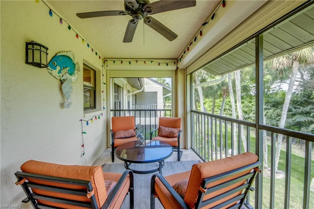 If morning walks feel like a LOVE LETTER to your SOUL and sunset strolls STEAL YOUR HEART, you just might FALL HEAD OVER HEELS for this charming escape. Located next to LAKES REGIONAL PARK, residents here enjoy INSTANT ACCESS to miles and miles of walking and biking paths, community botanical gardens, children’s train rides, fishing piers, kayak rentals, playgrounds, swimming and seasonal farmers markets. Well maintained two-bedroom plus den, two-bathroom condo with a bright and open great room floorplan. Cathedral ceilings and brand-new bedroom carpets. The kitchen is both stylish and functional, featuring maple cabinetry, Corian counters, pantry and full suite of stainless steel appliances—less than a year old. Whether you prefer formal dining or a more relaxed setup, this layout is perfectly flexible for a den and breakfast nook or formal and informal dining areas. The guest bathroom has been tastefully updated with granite countertops and a modern vanity. Both bathrooms include updated toilets, and the entire unit features a new water heater, upgraded lighting and ceiling fans throughout. The in-unit washer and dryer add convenience, and the condo is available partially furnished for a smooth and easy move. Enjoy the sunset at the close of your day from the screened lanai, toasting to your happily-ever-after. This home offers not one but two private lanais—one in the front and a rare, oversized 18’ lanai at the rear, surrounded by swaying palms, lush greenery and even a peek at the nearby golf course. Solid CBS construction, newly rebuilt carport and full hurricane protection—electric shutters on the lanai and front guest room, with non-electric roll-down shutters on all other openings—offer peace of mind during storm season. Best of all, this unit has never flooded and has no prior storm damage. An assigned outdoor storage closet provides extra space for bikes, beach gear, or seasonal items. The monthly HOA fee of $650 includes a generous package of essentials rarely bundled together: basic cable, internet/WIFI, water, sewer, exterior building insurance, lawn and exterior care, plus full use of the community’s resort-style amenities. The Club at Crystal Lake Condominium features two heated swimming pools, including a dedicated adult-only pool and a family-friendly option, both available year-round, plus spa, sauna, tennis courts, pickleball courts, clubhouse and tranquil walking paths that wind around a scenic lake with decorative fountains and a fishing pier. Minutes from the beaches of Fort Myers and Sanibel, shopping, dining and more. With a low-maintenance lifestyle, affordable pricing and a peaceful, well-kept setting, it’s no surprise this community is a favorite! BONUS: This unit is being sold partially furnished: everything in the master bedroom (except TV), all guest bedroom (except small wooden table), everything on both the front and rear lanai’s, all dining room and most of the kitchen (minus coffee pot and a few minor things).