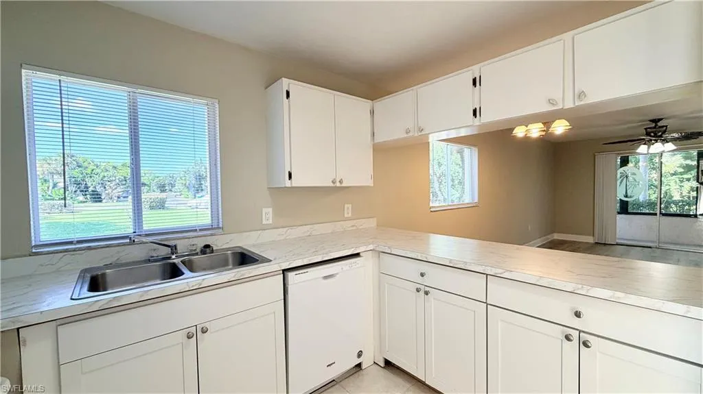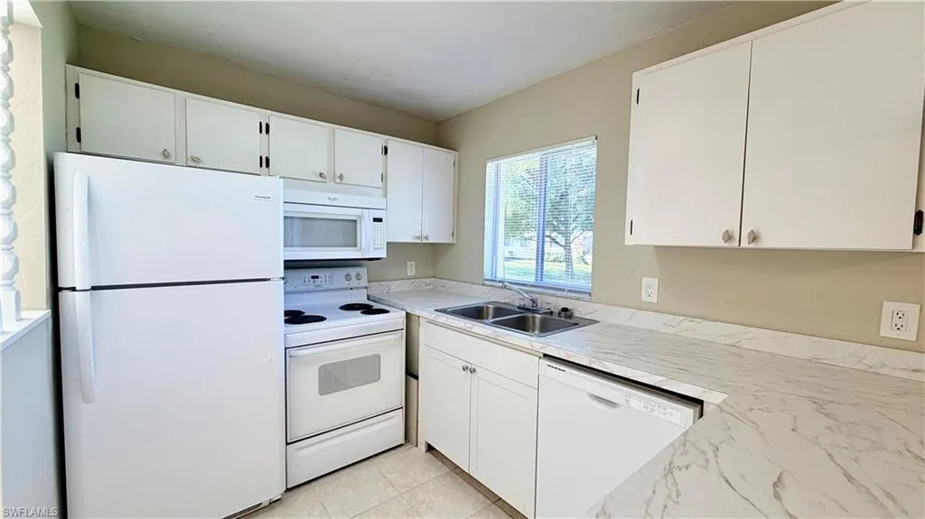 Welcome to your sunny Southwest Florida retreat! This bright, inviting 2-bedroom, 2-bath condo offers nearly 900 sq ft of comfortable living just moments from world-class beaches like Fort Myers Beach and Sanibel Island. Step inside to discover new flooring, a spacious great room flowing into the open kitchen with breakfast bar—ideal for relaxing or entertaining. The split-plan layout ensures privacy: the primary suite features a walk-in shower, while the guest bath offers a tub/shower combo. Wrap your day in the cozy enclosed Florida room overlooking lush, landscaped grounds.