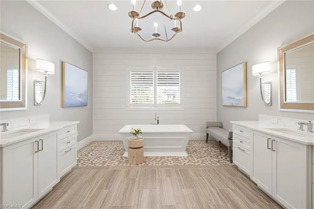 Experience the ultimate in coastal luxury with this newly designed and furnished waterfront masterpiece by Design West, offered furnished and ready for immediate enjoyment. Walls of glass flood the home with natural light, showcasing panoramic water views and exquisite craftsmanship throughout. This four-bedroom, six-bath residence combines modern elegance with relaxed sophistication, featuring impact-resistant Pella doors and windows, soaring ceilings and refined finishes. The open-concept great room impresses with a dramatic stone fireplace and a gourmet kitchen equipped with Wolf appliances, dual dishwashers, a wine refrigerator and walk-in pantry. A serene primary suite, private home office, and elevator access to a loft with three en-suite guest bedrooms complete the thoughtfully designed layout. Designed for entertaining, the expansive outdoor space offers a three-tier pool and spa, fire features and a summer kitchen with pizza oven, all positioned to capture stunning waterfront views. A new boat lift is being added in time for season, complementing the newer seawall, composite dock, and jet ski platform with direct Gulf access and no subdivision restrictions. An air-conditioned eight-car garage and circular driveway make this a car enthusiast’s dream. Just moments from Vanderbilt Beach, the Ritz-Carlton, LaPlaya Beach Club and Wiggins Pass, this exceptional property embodies the best of Southwest Florida coastal living.