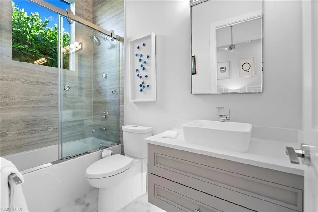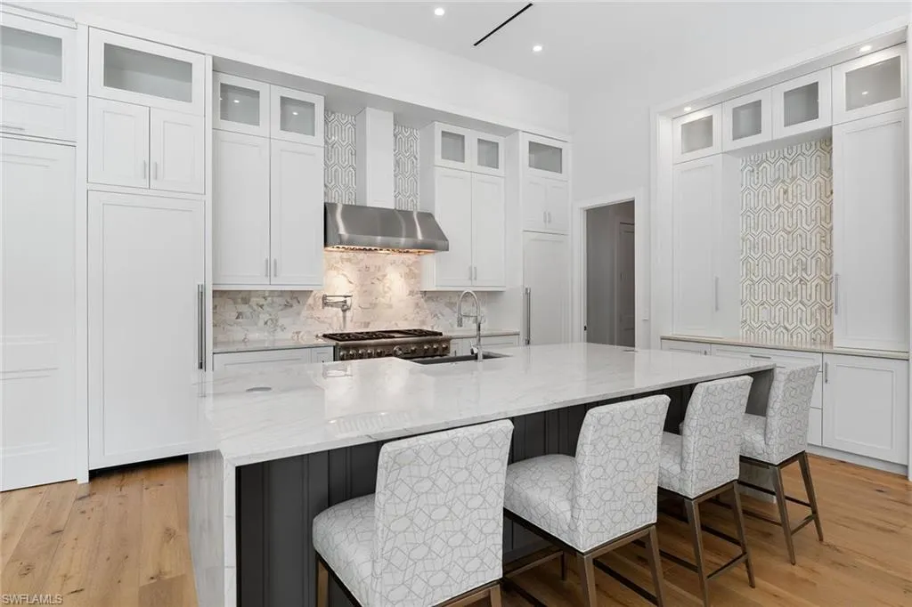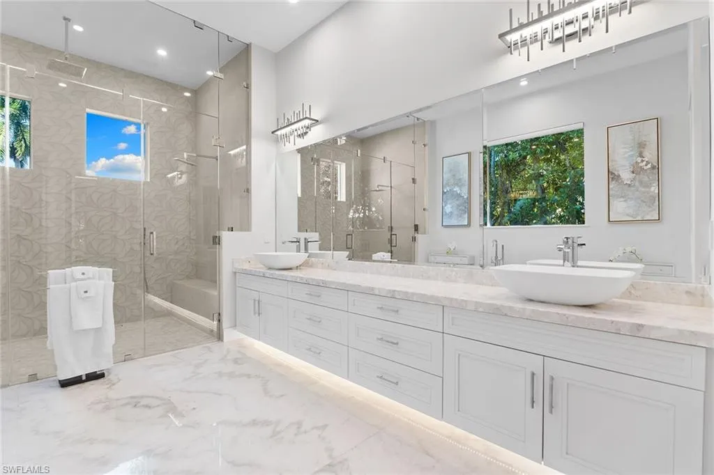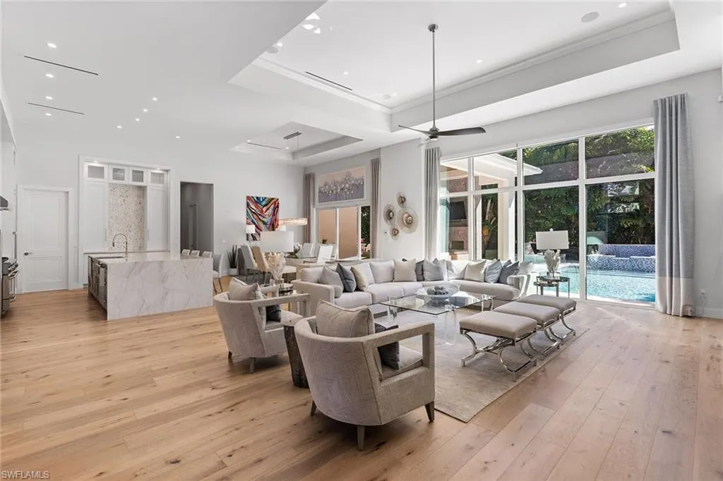 This exquisite 2020 custom-built residence in the heart of Coquina Sands offers 3,730 square feet of thoughtfully designed living space, blending modern elegance with timeless comfort. Perfectly situated in one of Naples’ most coveted central locations, this home is just a few blocks from the beach, minutes to the new Four Seasons Resort, and moments from the fine dining and shops of 5th Avenue South. The home features four spacious en-suite bedrooms plus a den, all centered around an open-concept floor plan that welcomes abundant natural light and effortless flow. Soaring 12-foot ceilings elevate every living space, from the family room to the formal sitting area—separated by a stunning glass-enclosed, temperature-controlled 80-bottle wine cellar. A true entertainer’s kitchen offers a double gas range, dual ovens, and a hidden butler’s kitchen for seamless hosting. Custom millwork, built-ins, and walk-in closets enhance the home’s refined design, while the primary suite serves as a serene retreat with dual vanities and a large walk-in shower. The outdoor living space is equally impressive, featuring a covered lanai with gas grill and sink, a cozy fireplace, and a luxurious custom spa. With coveted southern exposure, the backyard enjoys sunlight all day, creating a private oasis in the heart of Naples.