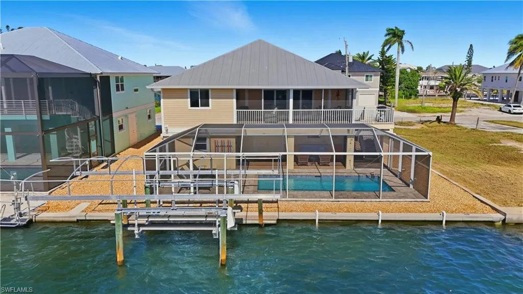 Step inside to discover a spacious split-bedroom floor plan featuring bright, open living areas and seamless indoor-outdoor flow. The sparkling pool and screened-in lanai create a private retreat ideal for entertaining or simply soaking in the Florida sunshine. A single balcony overlooks the tranquil canal, offering captivating canal and partial bay views that make every moment feel like a getaway. Boating enthusiasts will love the 10,000-lb boat lift and deep, wide canal providing swift Gulf and Bay access, while beach lovers can stroll to the direct beach access just at the corner! The home sits on a spacious parcel with low-maintenance tropical landscaping, offering beauty and ease of ownership. Enjoy ample parking in the oversized garage with bonus space for storage or hobbies. Whether you’re seeking a personal island retreat or an exceptional investment opportunity on a weekly rental street, this property delivers both lifestyle and income potential! Conveniently located near shopping, dining, bars, and the marina, this home is truly a beach and boater’s dream — a place where every day feels like vacation. Make this extraordinary coastal escape yours and turn your island dream into reality!