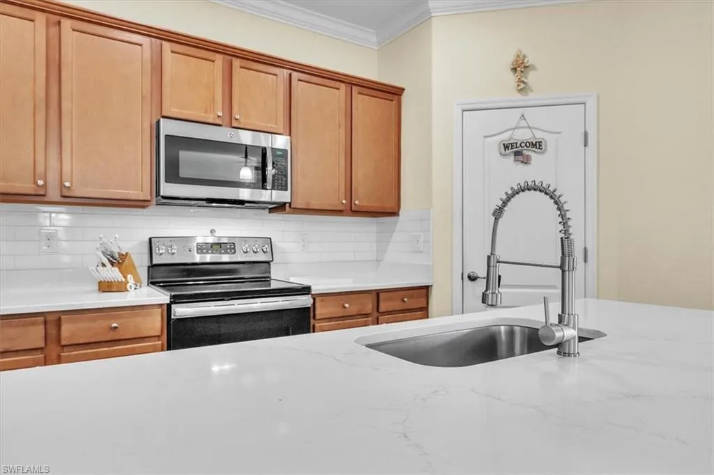 Discover the elegance of 3112 Walnut Grove Lane, a meticulously updated home in the prestigious River Hall Country Club. This stunning residence offers picturesque views of the sixth green, creating a serene and luxurious backdrop. The home features a brand-new roof (2023), a new HVAC (2024), and crown molding. Recent modern upgrades include sleek quartz countertops with a new single bowl stainless steel/sink faucet and garbage disposal, and a stylish white subway tile backsplash in the kitchen, elevating both form and function. The bedrooms showcase durable, luxury vinyl plank flooring, adding warmth and sophistication. With the added convenience of direct mail delivery to the home, this property perfectly blends modern comfort with the upscale lifestyle of River Hall Country Club. Don’t miss this excellent opportunity!