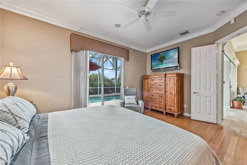 This home will make you the envy of all your neighbors with its extraordinary floor plan improvements and upgrades! Spacious and magnificent, this home strikes a tone. It’s one of a kind. Completely renovated Carlyle pool home features a custom, high-end chef’s kitchen featuring self-closing cabinets, quality stainless steel appliances, large flat top granite countertops, large island and it lends itself to the ultimate modern, open floor plan. This home boasts custom, travertine stone flooring throughout and onto the lanai, and is nicely complemented by hardwood bamboo flooring in the flex room and primary bedroom. Crown molding, surround sound and custom cabinets finetune your place in the sun. Granite tops in all the baths, additional custom side-patio off the kitchen with awning. An extra wide driveway further serves your convenience as upgrade. New roof in 2019. New wall oven and new dishwasher in 2018. New refrigerator in 2019. New cooktop in 2019. New washer and dryer in 2021.