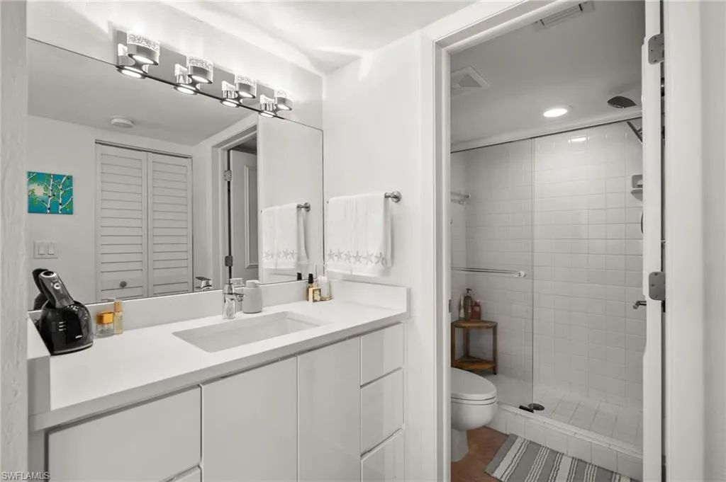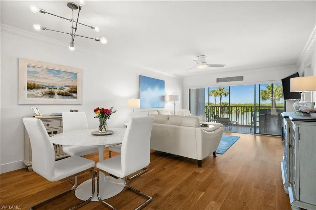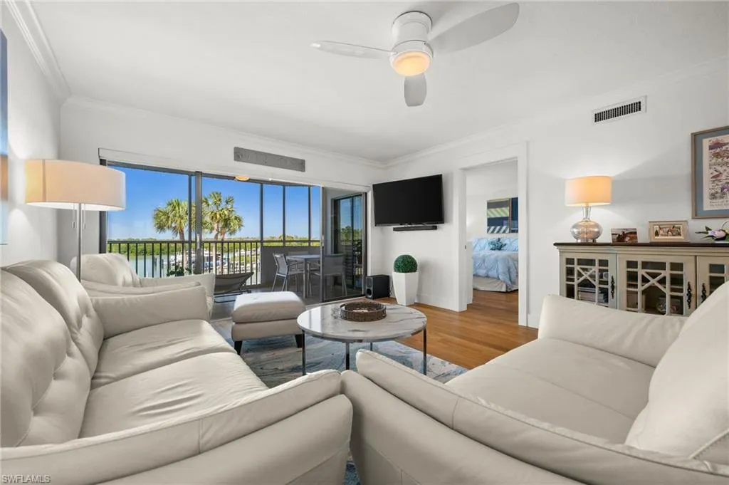 This west facing condominium offers STUNNING WATER VIEWS WITH ENDLESS SUNSETS! Upon entering, you will experience the modern style which has been remodeled in recent years and provides a sense of comfort and relaxation. The kitchen offers generous white cabinetry including a panty, Cambria/Quartz counters, Induction double-oven range, under cabinet lighting and seating for 4 at the bar. The split bedroom floor plan is ideal for privacy. Enjoy the screened in lanai overlooking the sparkling water and a beautiful tropical pool area with a Tiki Hut, modern furniture and amenities! The Anchorage is an exceptional choice for those seeking a resort-like atmosphere in an exclusive coastal setting. Nestled between Vanderbilt Beach and Wiggins Pass, you can boat or kayak directly to Barefoot Beach! Located nearby is Delnor-Wiggins Pass State Park, Mercato, The Turtle Club, Baleen at LaPlaya and so much more! Other important features include impact windows, Oak Wood floors, newer roof (2023), new water heater (2025), deeded covered parking and storage closet, and kayak/bicycle storage. Come see for yourself…THE ANCHORAGE is a true hidden gem!