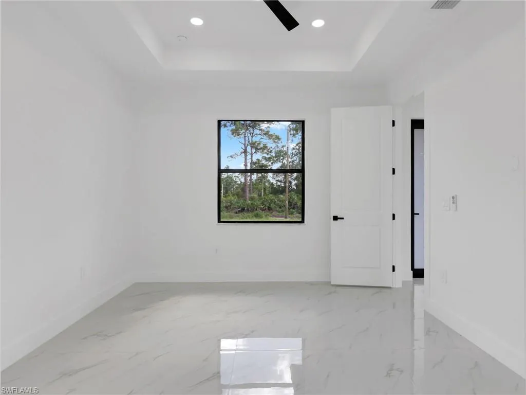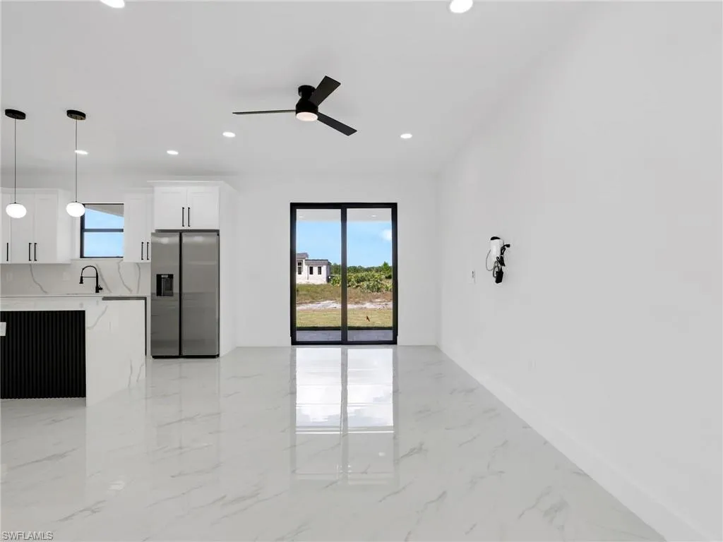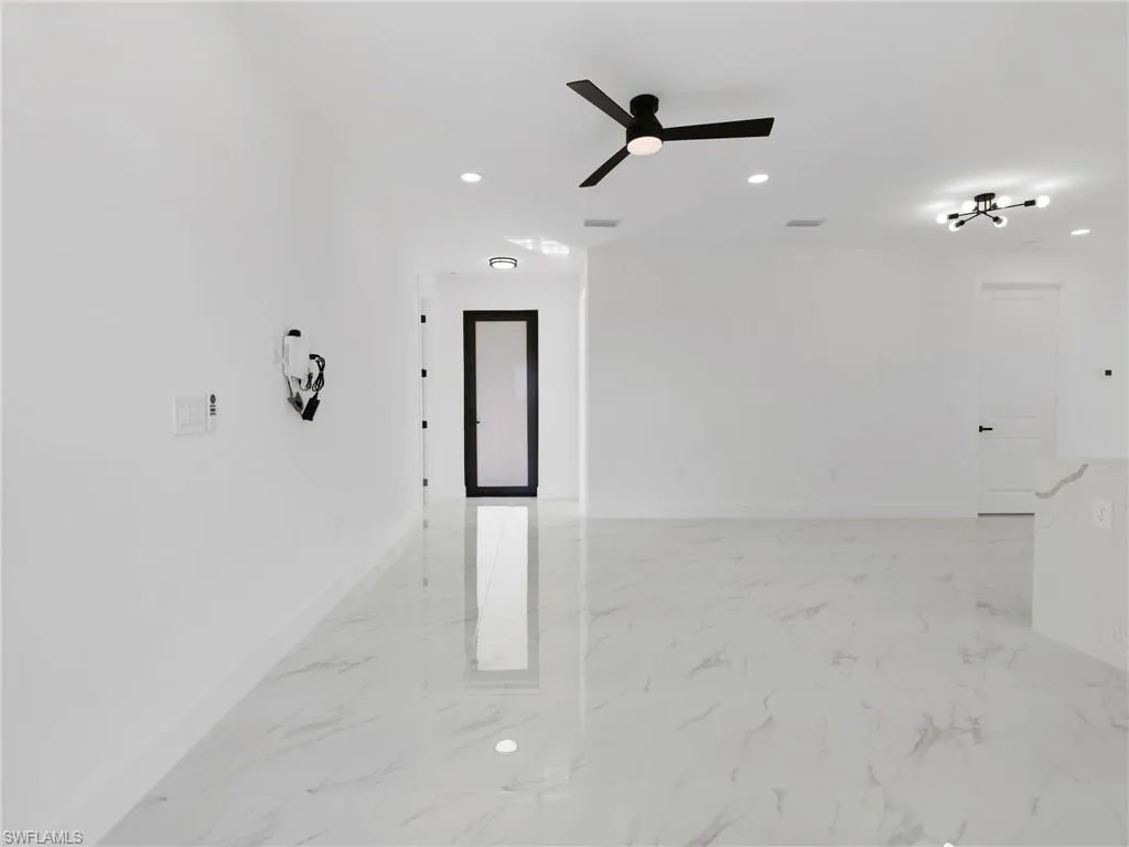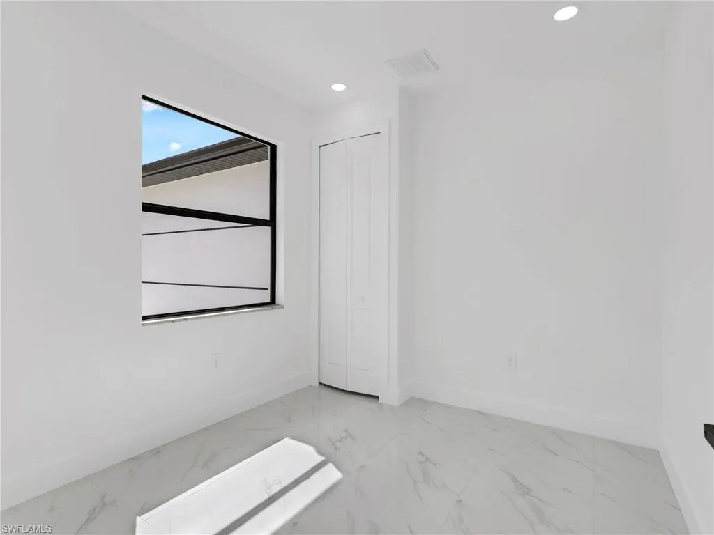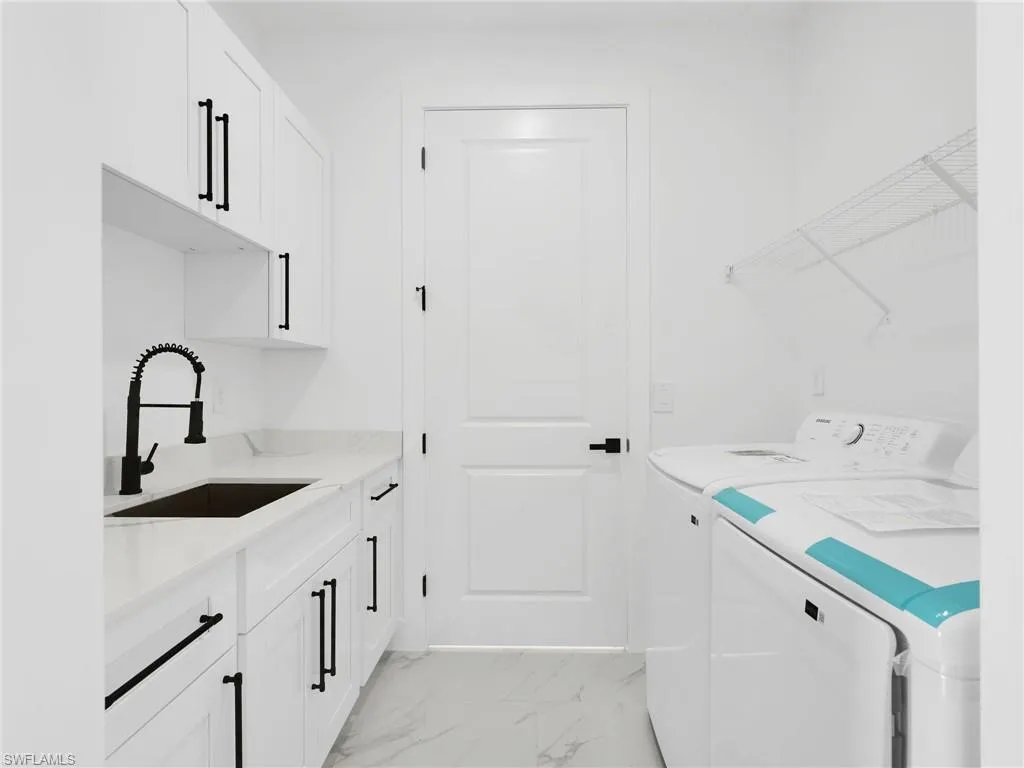 This NEW CONSTRUCTION HOME combines MODERN STYLE, PREMIUM FINISHES, and a SMART LAYOUT that truly stands out. It features 4 BEDROOMS and 2 FULL BATHROOMS with TILE FLOORING THROUGHOUT, offering both ELEGANCE and DURABILITY. The MODERN LIVING ROOM showcases UNIQUE DESIGN DETAILS rarely found at this price point. The SPACIOUS KITCHEN includes a STUNNING WATERFALL ISLAND, QUARTZ COUNTERTOPS, STAINLESS STEEL APPLIANCES, and PREMIUM FINISHES. Enjoy IMPACT-RESISTANT WINDOWS AND DOORS for SAFETY and ENERGY EFFICIENCY. The LAUNDRY ROOM is FULLY EQUIPPED with COUNTER SPACE, CABINETS, SINK, WASHER, and DRYER INCLUDED. Step outside to a LARGE COVERED LANAI with EXTERIOR COUNTER, perfect for RELAXING or ENTERTAINING. The 2-CAR GARAGE features EPOXY FLOORING for STYLE and DURABILITY. Additional upgrades include PENDANT LIGHTS, CEILING FANS, LED LIGHTING, STYLISH BATHROOM MIRRORS AND FIXTURES, and a SECURITY CAMERA SYSTEM. Located in a TOP LEHIGH ACRES ZIP CODE, just 17 MILES FROM FORT MYERS INTERNATIONAL AIRPORT, this home offers CONVENIENCE, QUALITY, and MODERN LIVING. HELP WITH CLOSING COSTS AVAILABLE.
