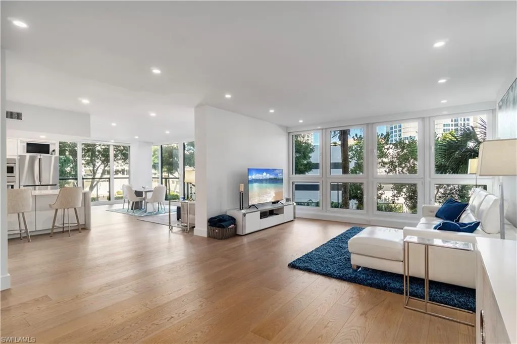 An extraordinary beachside opportunity on Gulf Shore Blvd! This 2,200 sq. ft. furnished residence in the prestigious Allegro of Park Shore offers modern coastal elegance just steps from the sand at only $590 per sq. ft. – one of the best values in Park Shore. The open floor plan features a sleek kitchen with Bosch appliances, quartz countertops, a large waterfall island, and canned lighting throughout. Finishes include wide-plank wood flooring, new drywall, wiring, plumbing, water heater, hurricane-rated sliders and windows, motorized shades, a spacious primary closet, and a large laundry room. Very large storage room located just outside unit.