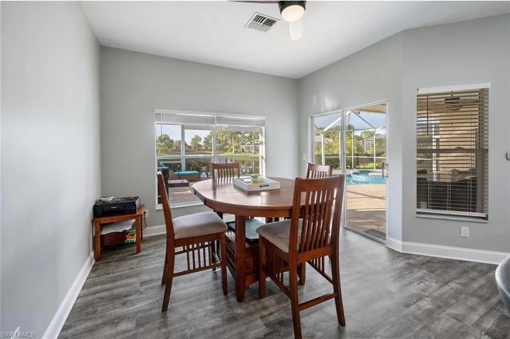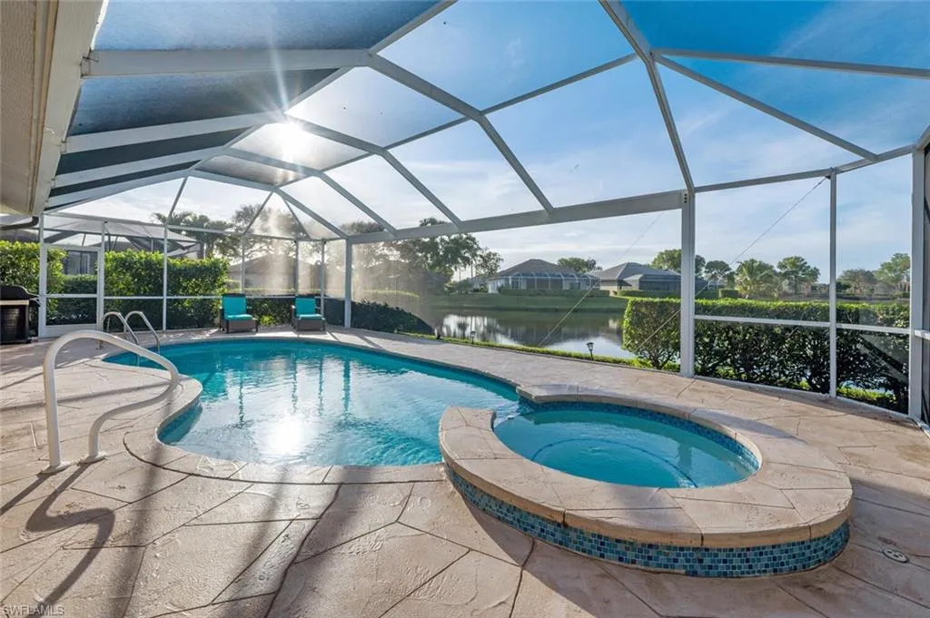 Welcome to this Turnkey tropical paradise with a no-see-um picture window screen. No expense spared by owner. BEST SUNSET POND VIEW IN THE SUBDIVISION. THIS BEAUTY WON’T LAST. Enjoy the stunning water view from your lanai with new (2019) picture window screen or while relaxing in your spa. Pool was resurfaced in 2022, New pool heater in 2021, New pool pump in 2025.New Air conditioner 2022, New roof 2019. Kitchen & Baths completely re-modeled 2019. Porcelain tile in Living room, dining room, Master bedroom & bath. Kitchen to bedrooms two & three luxury vinyl flooring. Lely is a wonderful location its close proximity half way to the beautiful white sand beaches of Marco island & everything downtown Naples has to offer. Fine dining, Botanical gardens, Zoo, art fairs & much more. Great investment opportunity. RESERVATIONS ALREADY MADE FOR 2026.Property can be rented 52 weeks a year, RARE WEEKLY RENTALS. Low taxes & fees.