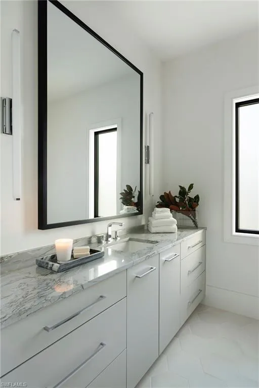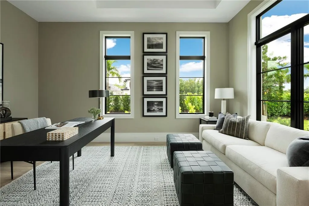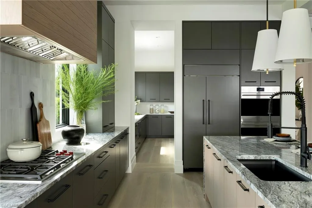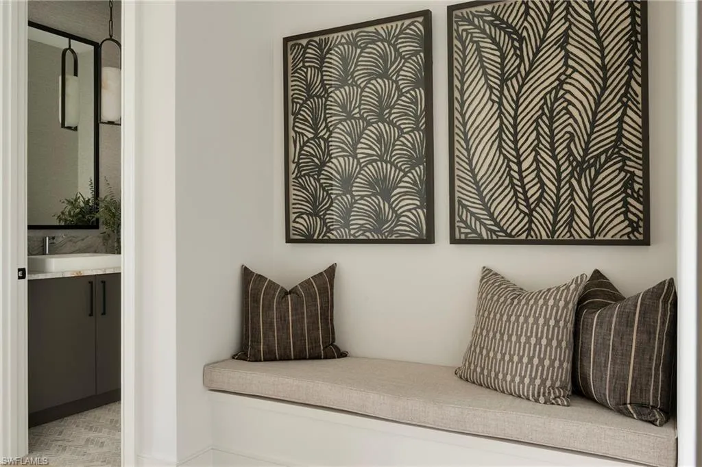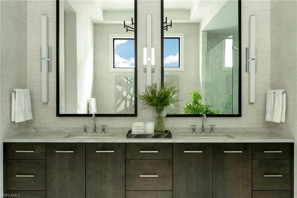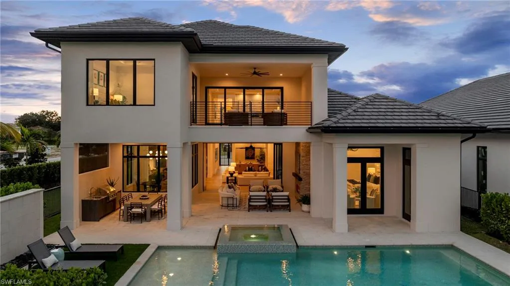 DESIGNER FURNISHED AND MOVE-IN READY! Seagate Development Group and Theory Design present the professionally designed and furnished Palm Springs Model Custom Home in Palisades, one of Seagate’s newest, gated communities in the heart of Naples. This custom home is a collaboration between Seagate Development Group and Theory Design with Architecture by JMDG Architecture, and custom landscape & hardscape design by Outside Productions. Enjoy a coastal design with warm, soft white and cream tones, light stained European White Oak flooring, decorative wall molding, and beam ceiling details. This custom home features 5 bedrooms, study, clubroom, 5 full and 3 half baths, upstairs covered lanai, and an oversized 3-car garage. The outdoor living area features electric roll down screens, tongue and grooved stained ceiling, outdoor kitchen, stone fireplace, turf lounge space, pool bath, custom pool with water feature wall, spa and lush landscaping. Enter the home through the grand two-story foyer. The great room is adorned with ceiling beams and a wet bar with an ice maker and undercounter wine refrigerator. The gourmet kitchen includes tongue and groove ceiling details, stacked cabinetry, natural stone backsplash, custom hood, island with waterfall countertop, paneled Sub Zero/Wolf appliance package, windows for natural lighting and oversized laundry/pantry with additional refrigerator and dishwasher. The master suite features a sitting area with sliding glass doors leading to the covered lanai. The master bathroom features honed marble floors and comes equipped with Kohler plumbing fixtures including a private water closet, soaking tub, spacious shower with 4 showerheads and a linen closet. The custom staircase leads to the second floor which offers 3 VIP guest suites, a clubroom with a built-in bar with undercounter beverage fridge, and a covered lanai. Additional luxury features include 9.45” European White Oak wood floor throughout the main floor and clubroom, custom built-in closets, 1 ¾” solid interior doors, Emtek door hardware, linear HVAC diffusers in common areas, level 5 drywall, double pane Andersen impact windows & doors, Control4 home automation system, sound system, spray foam insulation, custom iron front door, natural gas, lush landscaping, and interior designer selected custom light fixtures and furnishings. Palisades is an enclave of 25 custom homes situated in a premier Naples location with abundant amenities. Palisades is only minutes away from Mercato, Waterside Shops, 2 Ritz-Carltons, and other exceptional shopping, dining, and beachfront destinations. Seagate’s portfolio of companies specialize in custom homes, renovations, interior design, estate management, and land development. Together, bringing exceptional concierge levels of service to everything we do. SALES CENTER OPEN DAILY.
