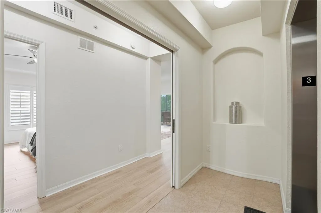 Arrive in comfort through your attached 2-car garage and private elevator entry directly into your condo — easily adaptable for handicap accessibility. Inside, you’ll find plantation shutters, high ceilings, spacious rooms, and ample storage throughout.