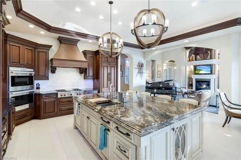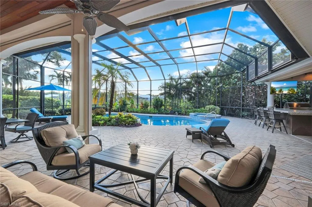Experience Resort-style living in this gorgeous 5-bedroom plus den home perfectly situated on the golf course. The spacious open floor plan welcomes you with high ceilings, abundant light, and elegant finishes throughout. Five generously sized bedrooms, 3 are ensuites offer ample space for family and guests, while the versatile den is ideal for a home office, media room or extra guest accommodations. The roof was replaced in 2023 along with the gutters and the exterior of the home was painted in 2023. A whole house generator was installed in 2023. Step outside to your private outdoor entertaining oasis complete with a large, covered lanai and outdoor bar with refrigerated drawers and built in grill. Enjoy relaxing evenings hosting friends and family with a dedicated dining area, and plenty of room for grilling and outdoor activities. The seamless indoor -outdoor flow makes every gathering memorable, whether you are watching the sunset over the golf course or enjoying a quiet morning coffee. The 3-car garage with epoxy flooring and built in cabinets is an added plus. Audubon is one of Naples premier communities featuring an 18-hole Troon Managed golf course, Courtside café including indoor/outdoor dining, state-of-the-art fitness facility, community lap pool, bocce courts, tennis courts, Pickleball and a boardwalk down to the water. Currently there is a very short waitlist for golf membership, and social waiting golf members enjoy golf privileges immediately. Audubon Country Club is conveniently located to Vanderbilt Beach and Barefoot Beach.