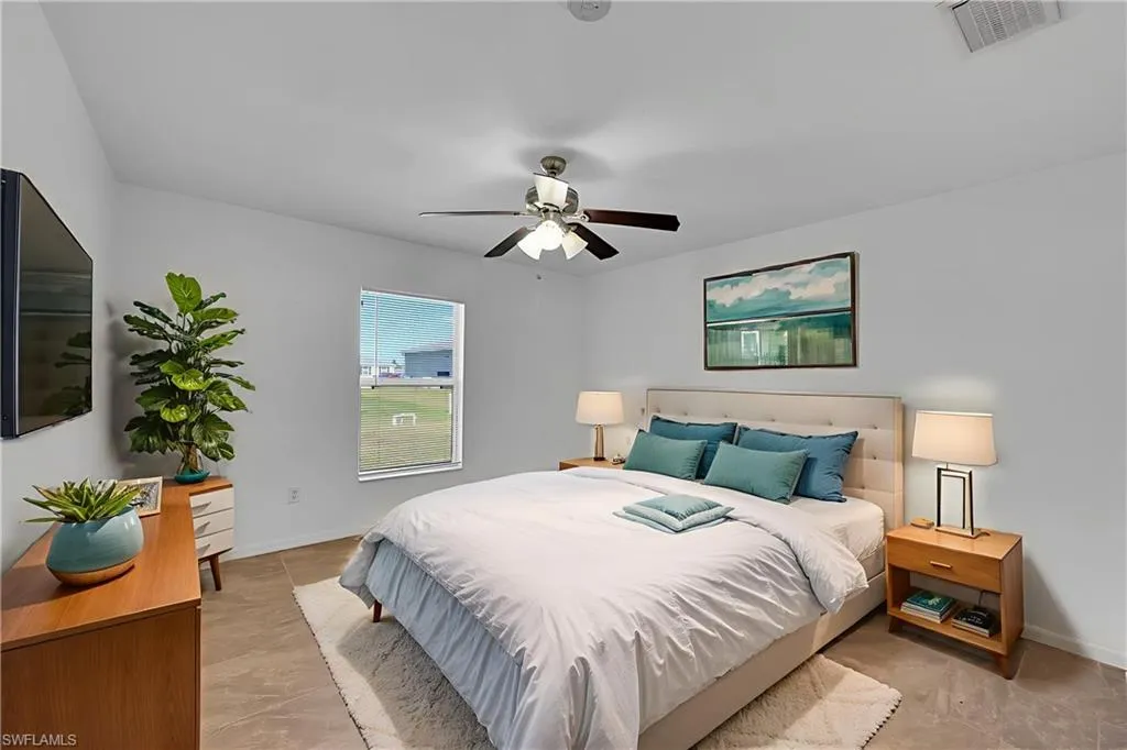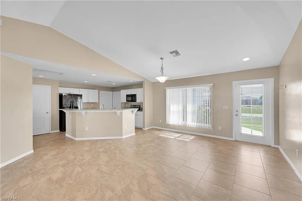 Discover exceptional value in this beautifully maintained 3-bedroom, 2-bath home located in a peaceful, non-HOA neighborhood of Northwest Cape Coral. With over 1,400 square feet of living space, a split floor plan, and thoughtful updates throughout, this property is the perfect starter home or seasonal retreat. Step inside to find an open, light-filled layout with all-tile flooring—no carpet anywhere! The kitchen features new granite countertops, a brand-new range (2025), and lots of cabinets & storage space. Both bathrooms have been refreshed with modern finishes, and there’s plenty of storage throughout the home. Practical upgrades add peace of mind, including a 2020 water heater, a newer reverse osmosis system, and septic system serviced and cleaned in 2025. Enjoy your mornings or evenings on the screened lanai overlooking a quiet backyard with desirable northern exposure. The home sits on well and septic—meaning no monthly water bills—and offers a two-car garage, spacious driveway, and quick access to shopping, dining, and schools along Pine Island Road. Clean, move-in ready, and attractively priced—this home combines comfort, convenience, and affordability in one inviting package.