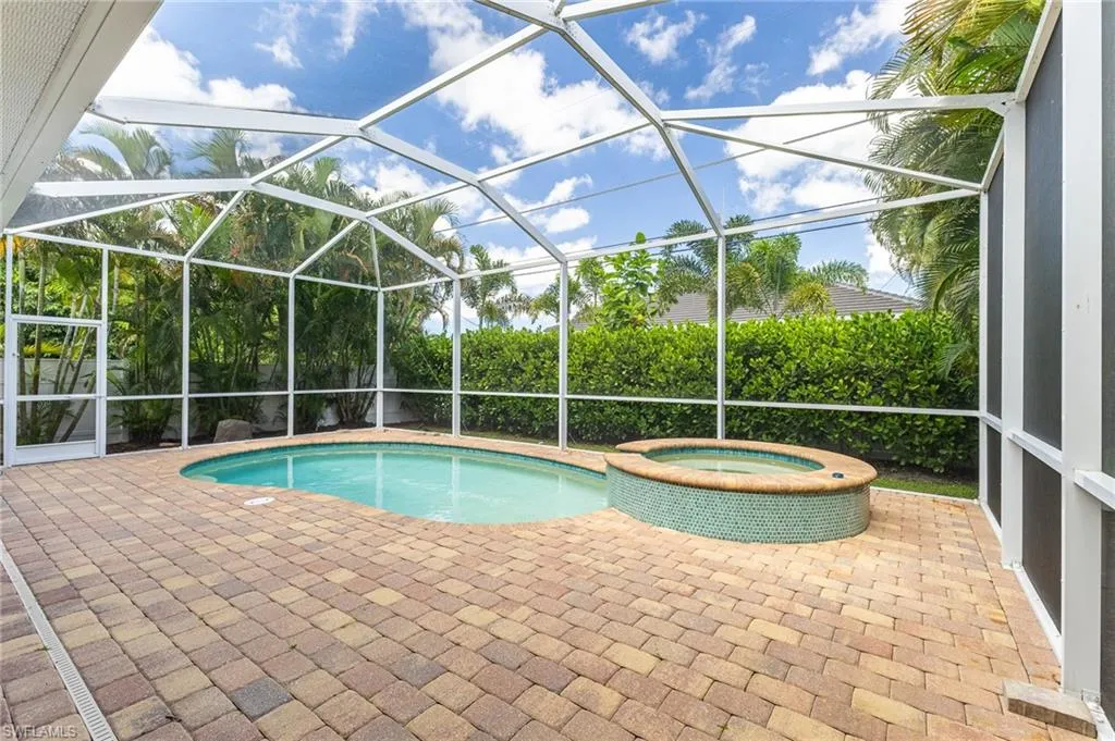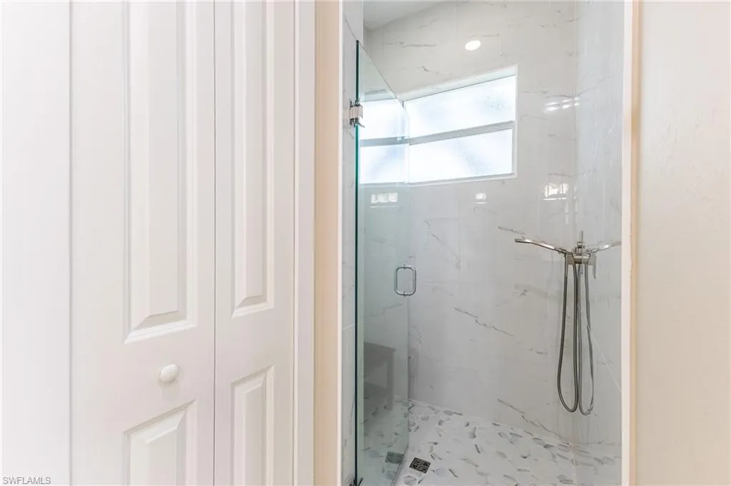 The spacious master suite offers a luxurious marble shower with a waterfall shower head and the feel of a serene retreat. Enjoy seamless indoor-outdoor living through the expansive lanai, complete with a heated saltwater pool and spa, built-in grill, and private fenced backyard surrounded by lush tropical landscaping.