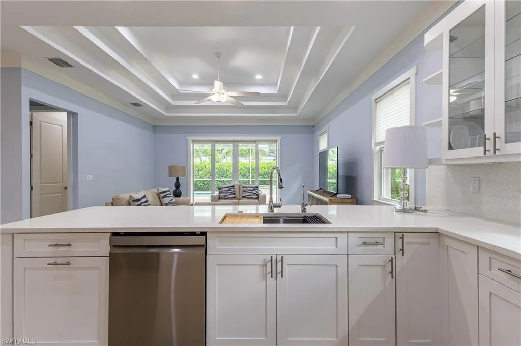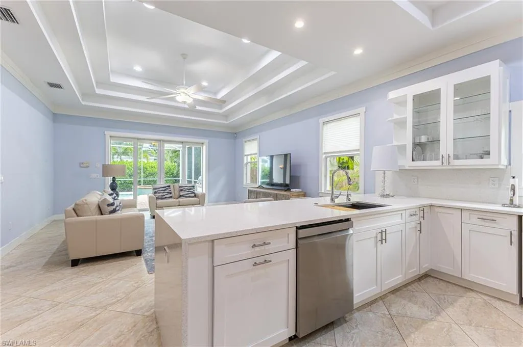 Located in Flood Zone X, this home is within walking distance to white sandy beaches, fine dining, shopping, and entertainment at Mercato. Additional highlights include double tray ceilings, a den ideal for a home office, and an inviting coastal lifestyle setting.