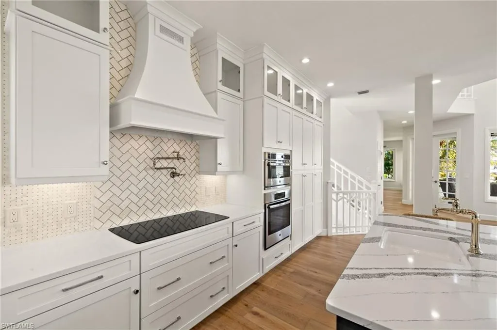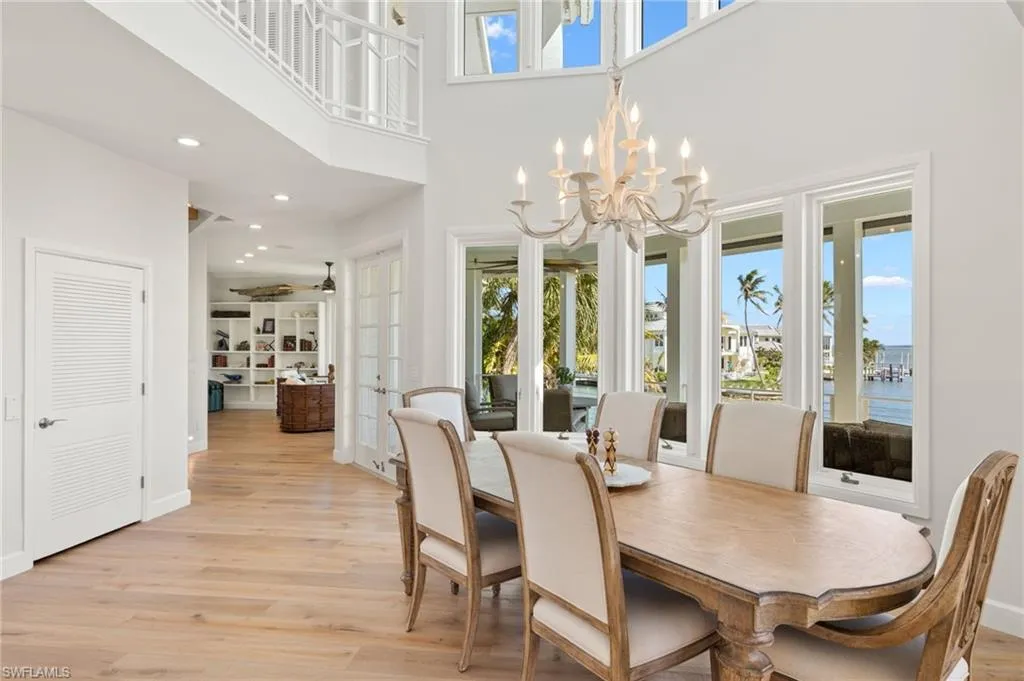 A rare Sanibel waterfront sanctuary, where luxury meets the open bay. Tucked away at the meeting point of two saltwater canals and the vast expanse of San Carlos Bay, this reimagined Sanibel retreat is a masterclass in waterfront living. With only a handful of homesites on the island offering this level of exclusivity, the owners saw an opportunity to create a residence worthy of its desired location, investing nearly $1 million in high-end renovations to elevate every detail. Here, the water is more than a backdrop, it’s a way of life. Wraparound bay and canal views immerse you in the scenery, where dolphins play, snook glide beneath the surface and the rhythmic tide draws manatees inshore. Designed for the yachting enthusiast, this prime location boasts some of the deepest boating access on Sanibel. A newly fortified shoreline features a 100-foot seawall, a 60-foot composite dock and a 28,000-pound boat lift, ensuring effortless passage to open waters. Go inside, and every space is an invitation to indulge. The main living areas were reimagined to maximize the sweeping vistas, while the chef’s kitchen, crafted by a luxury design specialist, seamlessly blends function with artistry. A Thermador cooktop with a pot filler, GE Profile wall microwave and oven, Fisher & Paykel dishwasher drawers and an LG French door refrigerator with a display view window create a culinary experience that is intuitive and indulgent. Cambria quartz countertops, LED toe-kick lighting and custom tile selections add a refined touch. Post-Hurricane Ian enhancements ensure resilience without sacrificing beauty. A new standing seam metal roof (2023), four all-new air-conditioning units raised to 12 feet, resurfaced pool and spa with natural stone pavers, and an upgraded irrigation system reinforce the home’s durability. Wide-plank oak flooring, interior stair tread lighting, and Sonos-integrated sound enhance the experience inside, while cable stair railings preserve uninterrupted views of the bay. Framed for an elevator shaft, the home is primed for future adaptability. Sanibel’s rarest waterfront opportunities are counted on one hand, and this is one of them. A home where modern luxury meets the raw beauty of the bay, offering an effortless blend of elegance, privacy and premier yachting access. For those who seek the extraordinary, this is an invitation to experience it.