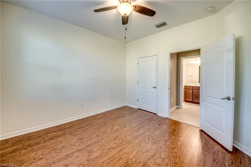 Amazing value!!! Tropical luxury just walking distance from this pristine open concept “Marsala” floor plan with 2,202 square feet of living area. Newly installed (2025) real HARDWOOD FLOORS are a rare find in the highly sought-after community of The Place at Corkscrew. Completed in October 2021, this Lennar home has been meticulously maintained and showcases over $30,000 in upgrades, including genuine red oak hardwood floors in all three bedrooms (+den), with premium sound reduction and moisture protection subflooring.