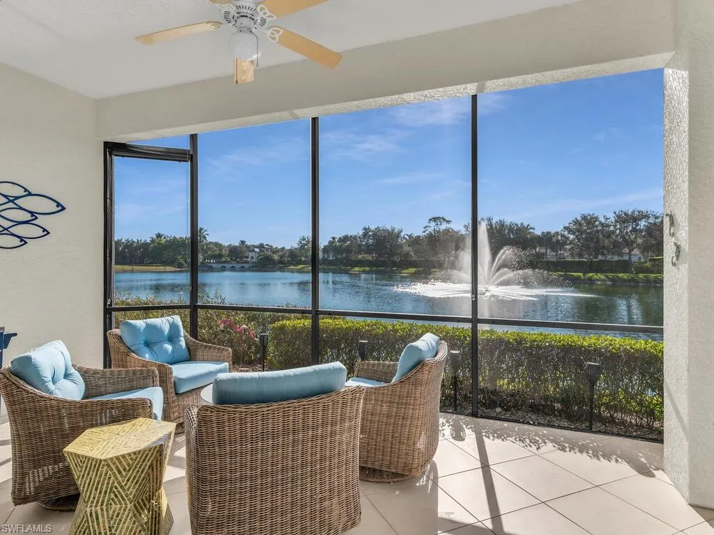 Welcome to this beautifully updated and meticulously maintained 2-bedroom plus den, 2-bathroom coach home in the highly desirable community of Hawthorne in the gated Classics Plantation Neighborhood of Lely Resort. Absolutely awesome view and the very best location in Hawthorne. The open concept living and dining area is perfect for both everyday living and with no stairs. Featuring high ceilings and impact glass windows and 12’ slider to your relaxing private lanai for gorgeous sunsets and the lake front view with the fountain. Enjoy cooking in the updated kitchen with stainless steel appliances, exquisite quartzite countertops, tile backsplash, and plenty of cabinet space and walk in pantry. The spacious master bedroom is a peaceful retreat with en-suite bathroom featuring dual sinks, a walk-in shower, and two large walk-in closets. The guest bedroom offers ample space, and the guest bath is thoughtfully designed with a walk in shower. A real laundry room with tub sink, folding counter and lots of cabinets and high end front loading machines. Features elegant tile flooring throughout the entire home and freshly painted. Enjoy the security and peace of mind of living in a gated lake community with well-maintained grounds. Take advantage of the Hawthorne resort-style amenities, including a clubhouse, heated pool, spa, and fitness center. No wait for the coveted membership of the prestigious Players Club & Spa, the private, world-class amenity offering an exceptional lifestyle, featuring 3 pools, 13 tennis courts, pickleball, a full service spa, a poolside bar & grill, fine dining & special events and and much more. Lely Resort has 2 championship-caliber public courses as well as a private course (The Classics) which has hosted multiple PGA Champions Tour tournaments. Located just minutes from Naples’ world-famous beaches, shopping, dining, and cultural attractions. This unit offers an ideal balance of privacy and convenience, with serene lake views and ample natural light flooding every room. Brand new gorgeous roof tiles. Don’t miss the opportunity to own this exceptional home in one of Naples’ most sought-after communities. Schedule your private showing today!