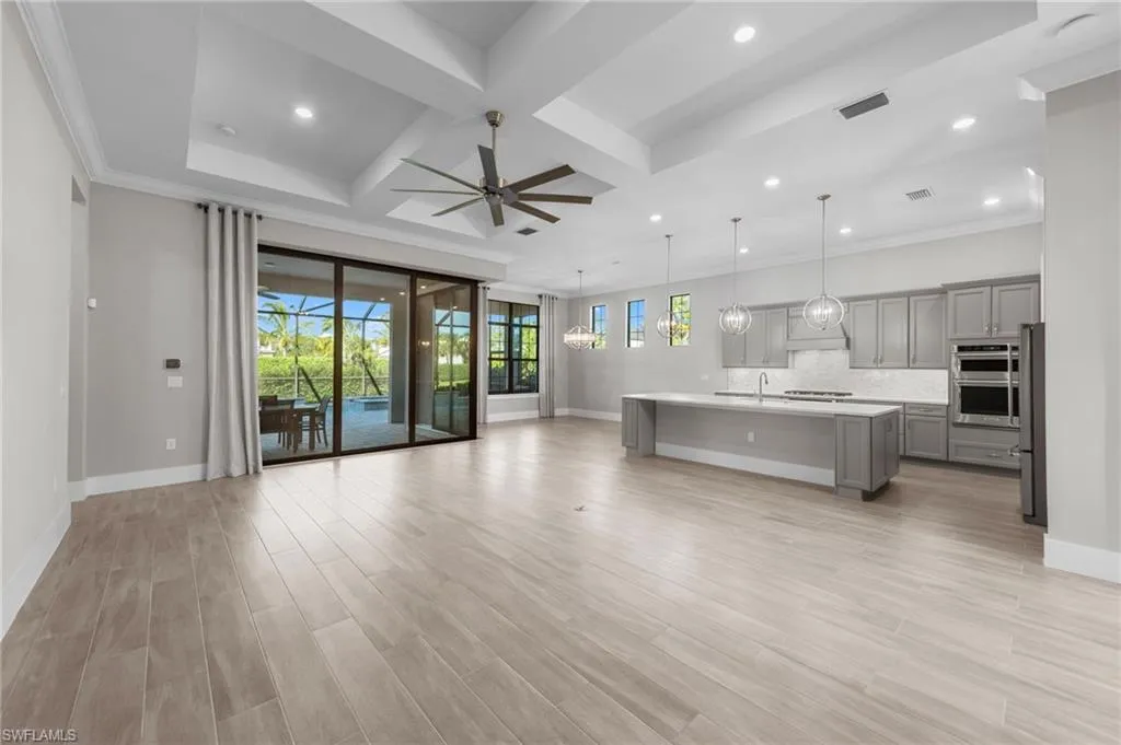 The home also includes designer lighting, luxury plank flooring, impact-resistant windows and doors, a whole-home Generac generator, dual-zone HVAC, and a three-car garage. With low HOA fees, no CDD, and a prime location near Miromar Outlets, Hertz Arena, FGCU, Gulf Coast Town Center, Coconut Point, and Southwest Florida International Airport, this home delivers the perfect balance of privacy, sophistication, and convenience. It’s Florida living at its finest.