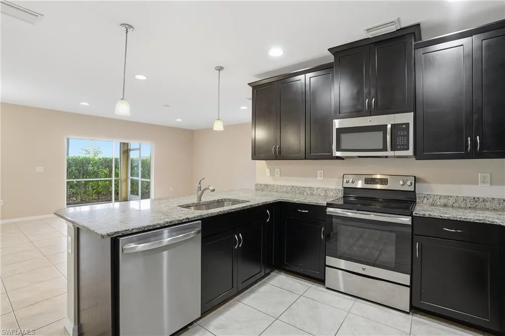 Bonus for buyers! Seller is offering a 2/1 rate buydown with acceptable offer to help ease into your new home with lower monthly payments. See the flyer in home for details. This spacious corner-unit townhome offers 3 bedrooms, 2.5 baths, a large bonus loft, and a 2-car garage with over 2,000 sq ft of modern living space. The bright, open main level features tile floors, granite countertops, premium cabinetry, stainless steel appliances, and abundant storage, including a pantry and under-stair nook. Upstairs, the airy loft makes the perfect home office or media space. The primary suite includes a walk-in closet and ensuite with dual sinks and a walk-in shower, while two additional bedrooms share a full bath. Enjoy peaceful mornings on your screened lanai overlooking lush landscaping. Hammock Cove offers a community pool, low HOA fees covering high-speed internet, cable, and lawn care. Gateway residents enjoy optional golf or social memberships with access to tennis, pickleball, fitness center, resort-style pool, and clubhouse dining. Ideally located near I-75, RSW Airport, shopping, dining, and spring training stadiums, this home delivers the ultimate SWFL lifestyle!