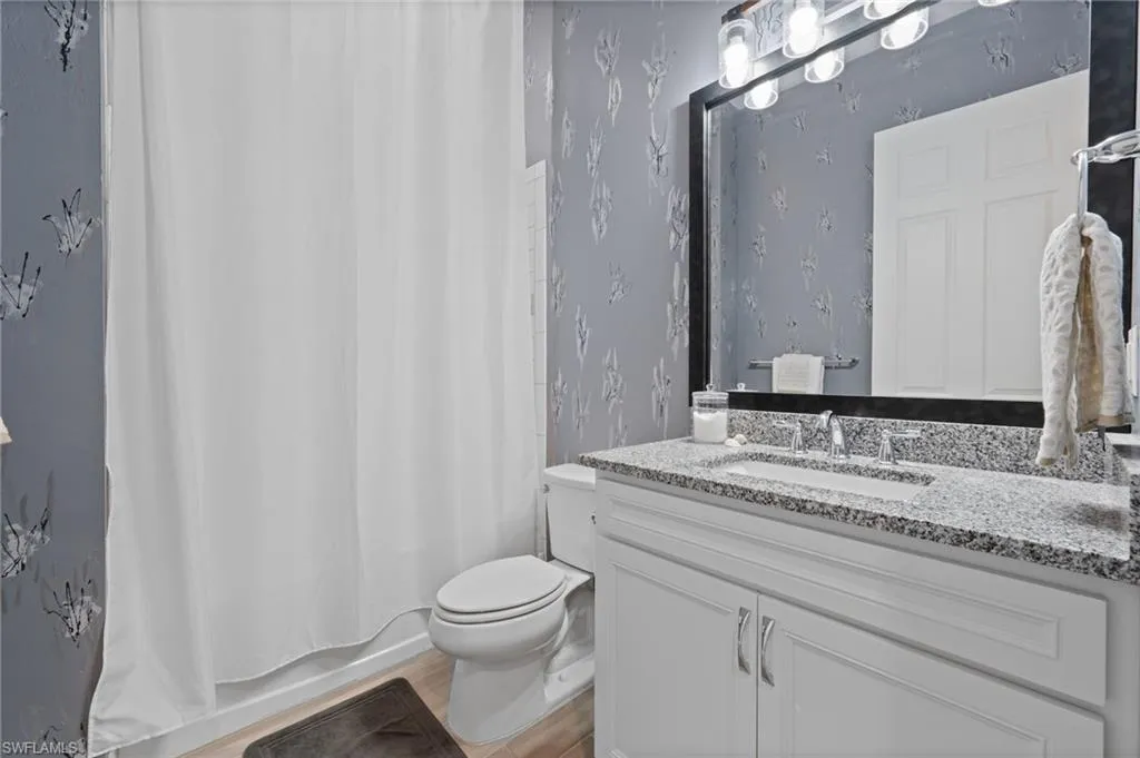 HOA FEES AND HOME WARRANTY COVERED FOR THE FIRST YEAR SO YOU CAN START ENJOYING THE SWFL LIFESTYLE TODAY WORRY FREE!! 2021 PULTE LAKEFRONT HOME WITH CUSTOM POOL! Located on a quiet cul-de-sac in the gated, amenity-rich community of Bridgetown—NOT in a flood zone—this popular “Stonewater” floor plan offers 2,852 sq ft of beautifully upgraded living. With 3 bedrooms, a den/flex room, 3 baths, and a 3-car garage, the home showcases over $235,000 in builder and post-closing upgrades. Enjoy soaring 10–12’ ceilings, 8’ doors, LED lighting, level 4 tile throughout the main living areas, remote controlled window treatments and an epoxy-finished garage. The gourmet kitchen features 42” white cabinetry with pull-out drawers, quartz countertops, a large island, stainless KitchenAid appliances, and an elegant wood canopy vent hood. Step outside to a stunning lanai with a brand-new heated custom pool (2025) featuring a tanning ledge sun shelf, a pool enclosure with super screens and a picture window for unobstructed views, and white honed marble decking—cool underfoot and gorgeous year-round. The owner’s suite includes a large walk-in closet and a spa-style bathroom with dual vanities and a floor-to-ceiling tiled shower. HOA fees include lawn care, irrigation, security, amenity center, cable and internet. Enjoy resort-style amenities: two pools, spa, tennis, pickleball, bocce, fitness center, playground, fire pit, BBQ pavilion, and miles of landscaped sidewalks. Plus, you’re just minutes to RSW, shopping, dining, and entertainment—THIS is the lifestyle you’ve been waiting for! Ask you agent for the full list of upgrades and schedule your showing today!