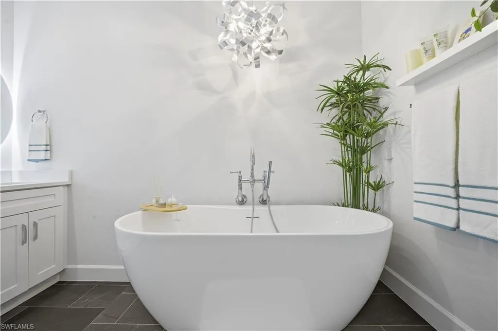 Step into the primary bath where a floor-to-ceiling tiled frameless glass enclosed walk-in shower, stylish lighted mirrors, premium bath fixtures, and a luxurious soaking tub beneath a beautiful chandelier create a spa-inspired space to relax and recharge. Additional features include all new premium LED lighting, all new fans, dimmer switches for mood lighting, luxury plank/tile/carpet flooring, crown molding in tray ceilings, Wi-Fi thermostat and security, and a two-car garage with cabinets and shelving, two Trek bikes and gas BBQ grill. Perfect for both everyday living and entertaining, this home features a private lanai with new ceiling fans, screens, tile flooring, stylish furniture with tranquil water views and a beautiful preserve that offer peace and privacy on the end of a quiet cul-de-sac street. Its ideal location near the airport, beaches, and great shopping makes it convenient for full-time or seasonal living. If you’ve been searching for the perfect Southwest Florida home—look no further!