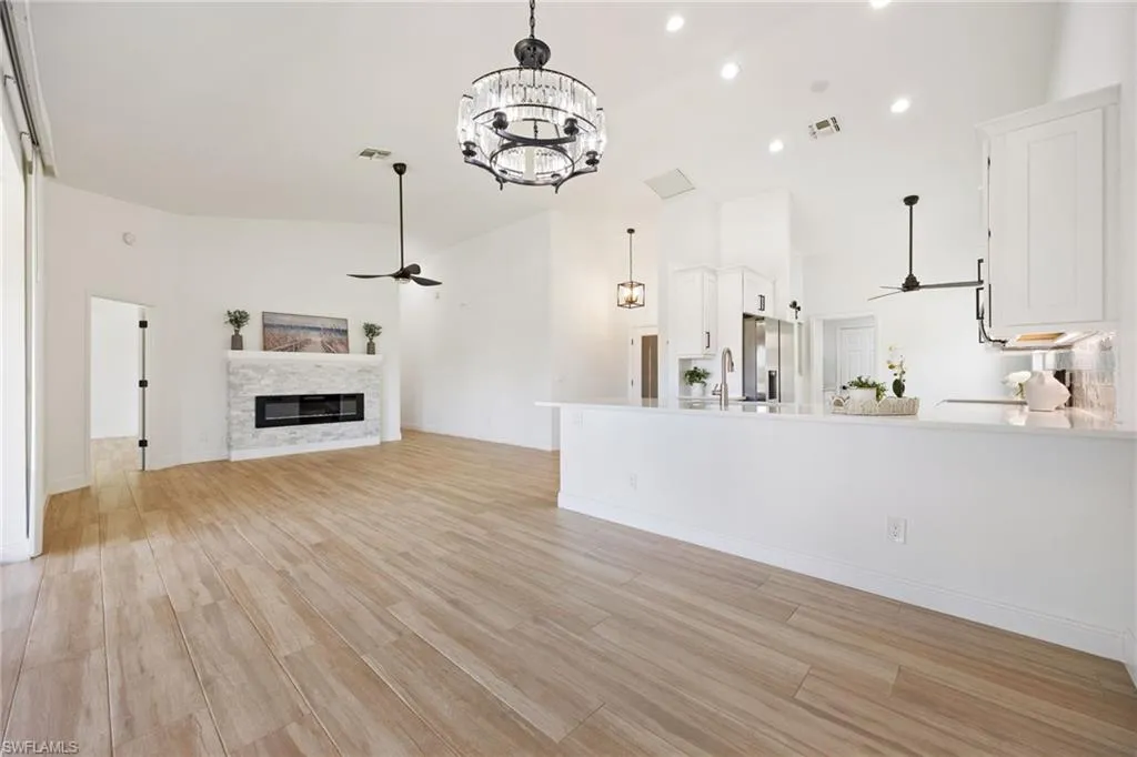 Discover one of the most remarkable homes in Kelly Greens Golf & Country Club- where luxury living meets the ultimate Florida lifestyle. Perfectly situated along a premier stretch of golf and lake frontage, this home delivers breathtaking panoramic views of the 11th, 12th, and 13th holes. Completely remodeled inside and out, every detail has been elevated with timeless design and modern sophistication. The bright southern exposure and expansive screened lanai provide the perfect backdrop to relax, entertain, or even design your dream pool overlooking the fairways.