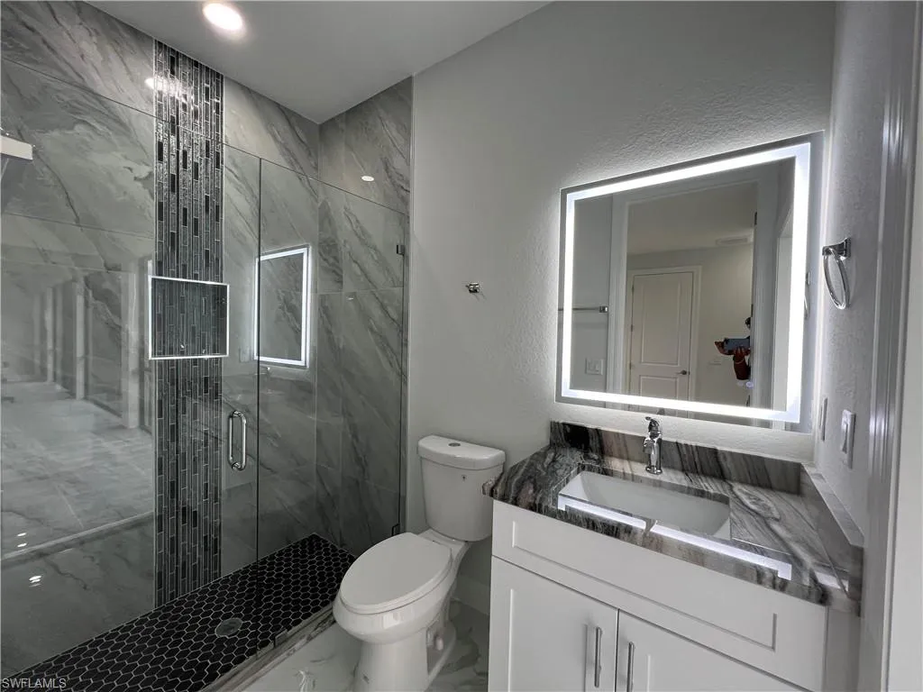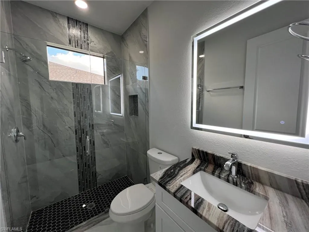 Step into this custom-built home just shy of 2,000 sq. ft. of living space and nearly 3,000 sq. ft. total, this thoughtfully designed home offers the perfect blend of luxury and practicality. From the start you’re greeted with an upgraded pavered driveway with substantial lighting from the soffit down lighting. Take a step inside to discover Level 4 granite countertops throughout, hurricane impact windows and doors, and a spacious two-car garage with sleek epoxy flooring. But we’re not done their, the gourmet kitchen features rare appliances such as, an oversized refrigerator, electric cooktop, and a microwave/wall oven combo—ideal for culinary enthusiasts. Adjacent to the kitchen, a stylish dry bar doubles as a coffee or wine station, completing the dining experience. The master bedroom is equally as impressive, equipped dual walk-in closets, dual sinks in the bathroom, a tile-accented bathtub wall, and a walk-in shower enclosed by a glass door. Outdoors, enjoy a large, screened lanai with tile flooring, complete with an outdoor kitchen and space for your choice of grill. There’s substantial room to add a pool, making this home perfect for entertaining. Outside there is also a dedicated door from the lanai to the bathroom which makes hosting gatherings seamless. Additional highlights include a fireplace insert for cozy evenings and a laundry room that includes a built-in counter for added convenience.