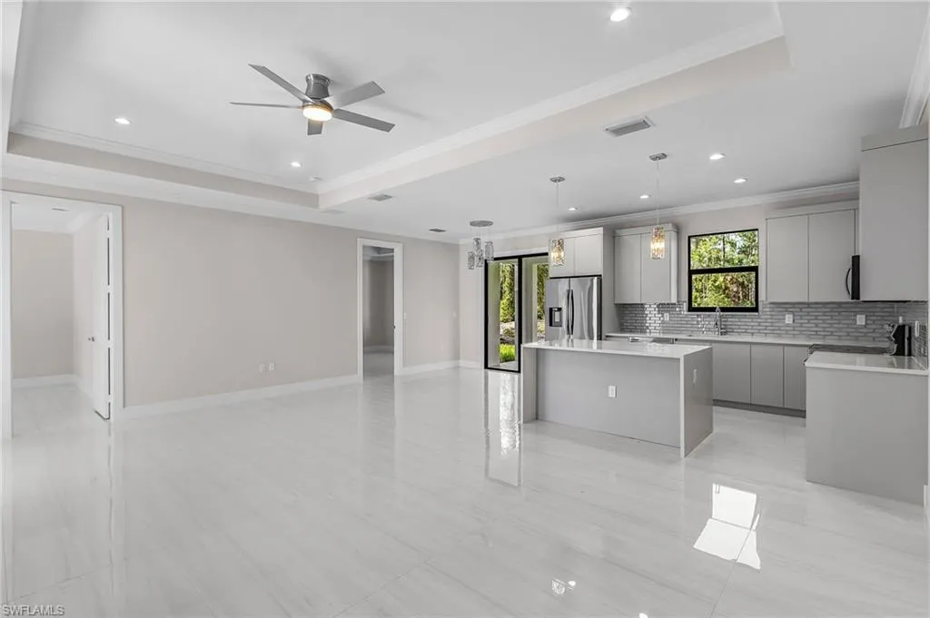Lovely 3 BEDROOM PLUS DEN, new construction situated on a ALL UPLANDS 1.14 acre lot, NO HOA, in the fast-growing Golden Gate Estates, Naples. Just minutes from supermarkets, pizza parlor, nail salon, and more. This high quality, beautiful new-build showcases an open floor plan with great attention to details. A bright and airy main living space; light filled den; tile throughout; fresh white kitchen with quartz countertop, a waterfall island, beautiful light colored backsplash, and 42″ wood cabinets; soaring high tray ceilings in the living room and master bedroom; 8-ft doors; impact windows and doors; automated sprinkler system; and asphalted driveway. Golden Gate Estates is the perfect combination of peaceful, rural setting, just a short driving distance from all the amazing amenities Naples has to offer. PICTURES ARE FROM THE SAME MODEL BUT NOT ACTUAL HOUSE.There will be some variations.