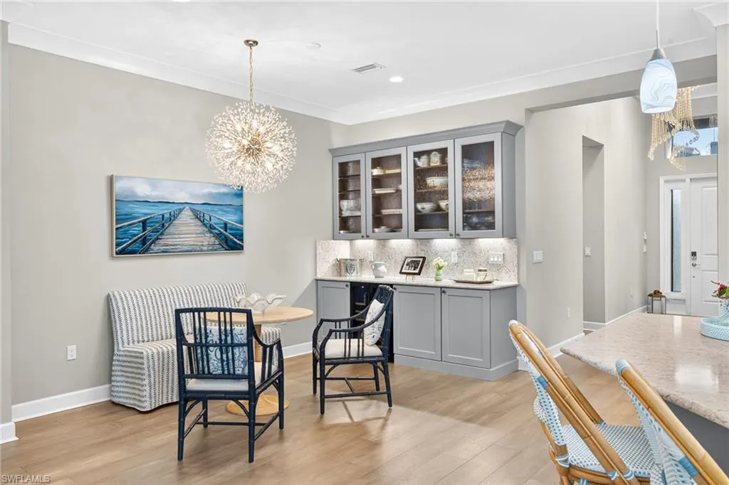 Inside, the built-in bar area features a new beverage refrigerator, while the screened front entry allows gentle breezes to flow through the home and provides a secure spot for package deliveries.