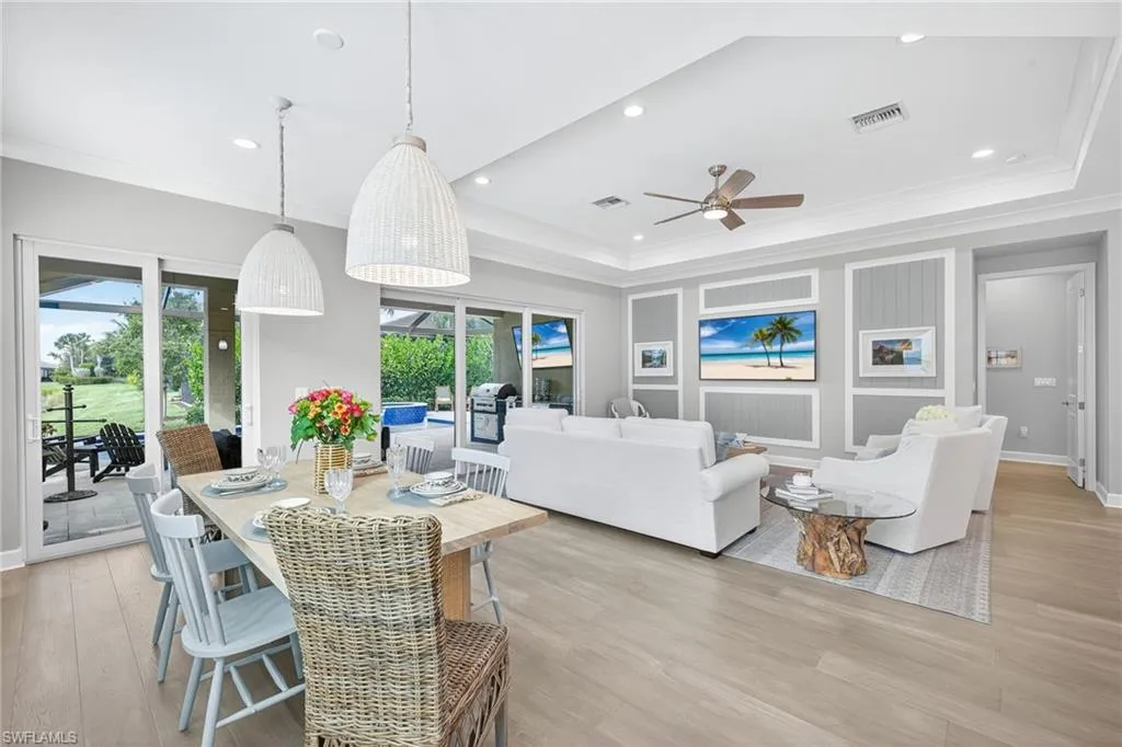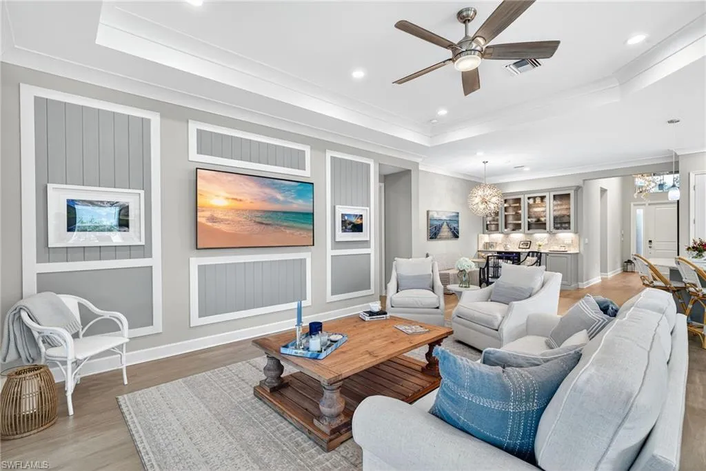 Step inside to a beautifully furnished interior in a coastal chic / Serena & Lily style. The home features upgraded flooring, crown molding, designer light fixtures, and custom-built closets throughout. Enjoy Florida living with full hurricane protection, including impact-resistant windows and doors, Storm Smart lanai screens, and a whole-house generator for peace of mind.