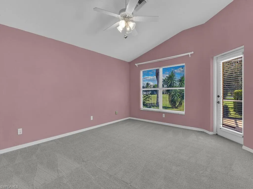 Golf course view single family home and is walking distance from Westminster Amenity center/country club. Recent updates include brand NEW carpeting (2025), hot water heater replaced in 2023, A/C unit replaced in 2022 and all appliances in 2022. The layout of this home is fantastic w/ den/home office off of the foyer w/ French door entry, volume ceilings, great room layout, split bedroom floor plan, spacious kitchen w/ lots of storage & countertop space, breakfast nook, formal dining area, and a large screened lanai. This home is ideal for seasonal or annual SWFL living! Westminster is a gated golf community situated right on the Fort Myers/Lehigh border, and it offers pay as you play golf, plus other wonderful amenities!