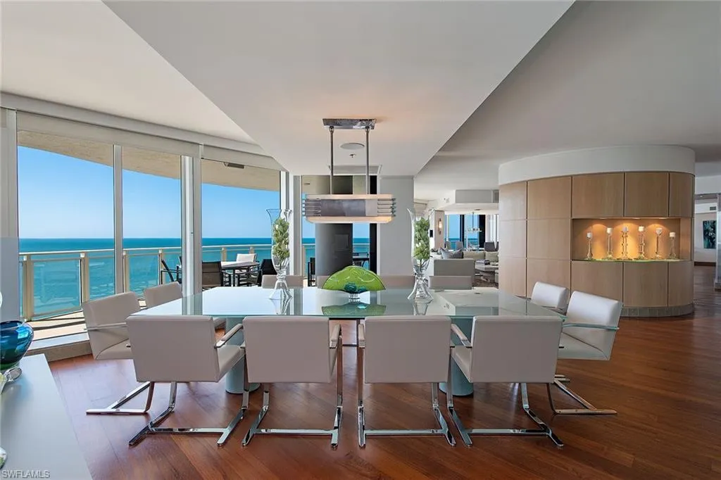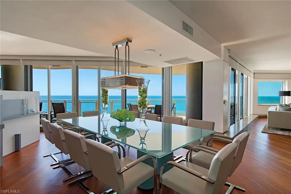 Welcome to the pinnacle of coastal luxury. This rarely available penthouse atop The Brighton at Bay Colony offers more than 6,100 square feet of refined living with panoramic Gulf views stretching from Park Shore to Sanibel Island. Accessed by a private, secured elevator, this top-floor sanctuary seamlessly blends elegance, comfort, and security. Inside, you’ll find 4 spacious bedrooms, a den, 4 full baths, and 2 half baths—designed to accommodate both grand entertaining and private relaxation. Rich teak floors run throughout the expansive living spaces, setting the tone for the sleek, chef-inspired kitchen outfitted with premium German appliances and stainless-steel finishes. Enjoy effortless living with abundant storage, dual washers and dryers, electric sunshades, hurricane-rated windows, and full storm protection via electric shutters. Step out onto your private rooftop terrace with all new decking—a true outdoor retreat—featuring a summer kitchen, private spa, and half bath, perfect for sunset cocktails or starlit soirees. This residence also includes two dedicated parking spaces and a private poolside cabana for those perfect Naples days. The building itself has recently completed a sophisticated lobby renovation and amenity upgrades to include a completely remastered lobby, social room with catering kitchen, fitness center, updated elevators and a new roof. The front entrance and pool deck refurbishment, currently underway, is scheduled for completion by April 2026—all fully paid for by the current owner. All that’s left for you to do is move in and enjoy the height of coastal living.