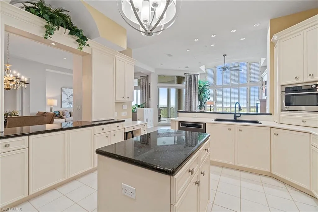 Welcome to this beautifully remodeled 12th-floor penthouse in Bonita Bay, offering breathtaking, unobstructed views of lush mangroves, wide Estero Bay and the Gulf. This three-bedroom, three-bath residence was beautifully updated in 2020 and is ready for its new owners. Enter inside to a bright and open floor plan featuring luxury vinyl flooring throughout and soaring volume ceilings that make this space feel bright and open. Custom built-ins in the living room help frame the space beautifully. The kitchen is a chef’s delight, complete with granite countertops, large island, breakfast bar, walk-in pantry and a gorgeous blue tile backsplash. It is equipped with a built-in oven and recessed lighting. The spacious primary suite is a retreat with floor-to-ceiling sliders that open to one of the unit’s two lanais. The fully remodeled en-suite bath boasts a walk-in shower, a soaking tub, dual sinks set in quartz countertops, a dedicated makeup vanity and soft-close cabinetry for extra storage. You will fall in love with the spacious primary closet with built-ins and a center island. Enjoy the best of Florida living with two separate lanais, one on the west side, enclosed with upgraded electric hurricane screens, with sparkling Gulf views for incredible sunsets, and a second on the east side with a view of the golf course and Bonita Bay beyond. Both lanais feature individual electric storm screens (2020) for added protection and comfort. Additional features include custom window coverings throughout, a dedicated laundry room with a utility tub, and a two-car enclosed garage on the second floor. Enjoy all Bonita Bay has to offer, including a private beach park on the Gulf of Mexico, over 12 miles of scenic walking and biking trails, three community parks and a full-service marina. Optional membership to the Bonita Bay Club grants access to five world-class golf courses, tennis, dining, spa services and more, some of the finest amenities in Southwest Florida.