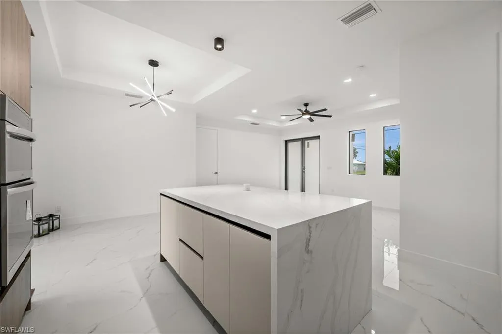 Welcome to the “Moonstone” Model. This amazing home is the perfect blend of value, comfort, luxury, style, and security. This beautiful new construction is built for everyone who wants to live with all the comforts of ‘home.’ Impact windows and doors, European style kitchen featuring soft closing cabinet doors, drawers and Bloom hardware, high-end appliances, double oven, hood, cooktop, wine cooler, and much more. Master bedroom with custom designed built in walk-in closet, master en-suite with glass shower enclosure, double vanity, and linen closet. Two spacious bedrooms with walk-in closets, guest bathroom with glass shower enclosure. Home offers open concept layout with 10-foot-high interior ceilings, 8-foot-high designer doors. Outdoor kitchen with marble countertops and 1/2 bath by the pool, ready for enjoyment 12′ x 24’ beautiful pool with Sun Ledge, 2 car garage, washer, dryer, and laundry sink. “NO FLOOD INSURANCE NEEDED”. Engulf in the multitude of upscale details that you must see to appreciate. Enjoy your day by the pool or explore everything Cape Coral has to offer. Do not miss out on this one-of-a-kind opportunity! Schedule your showing today and make this beauty your home!