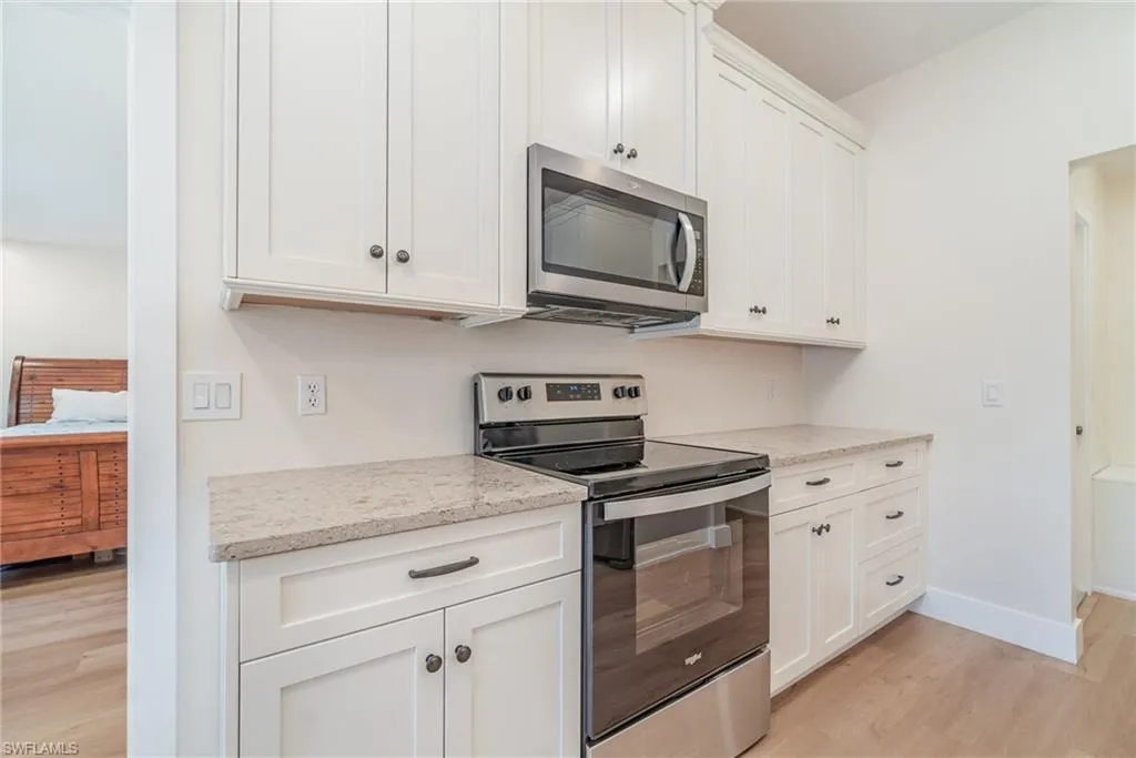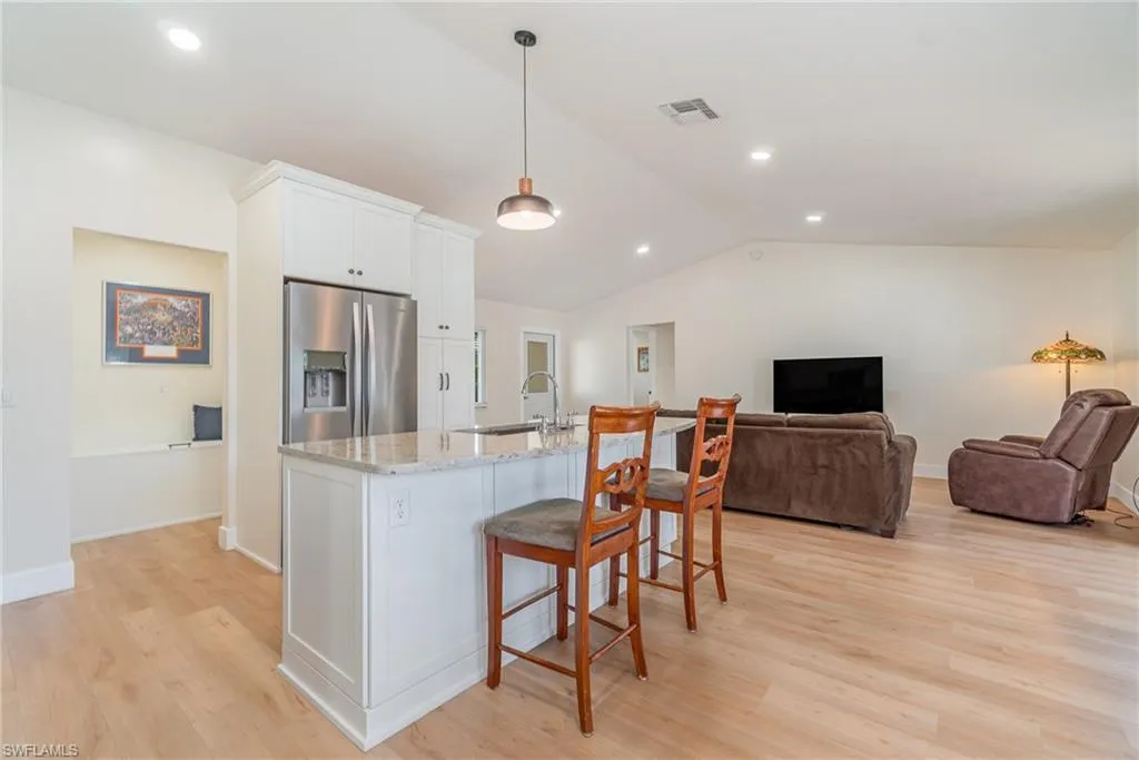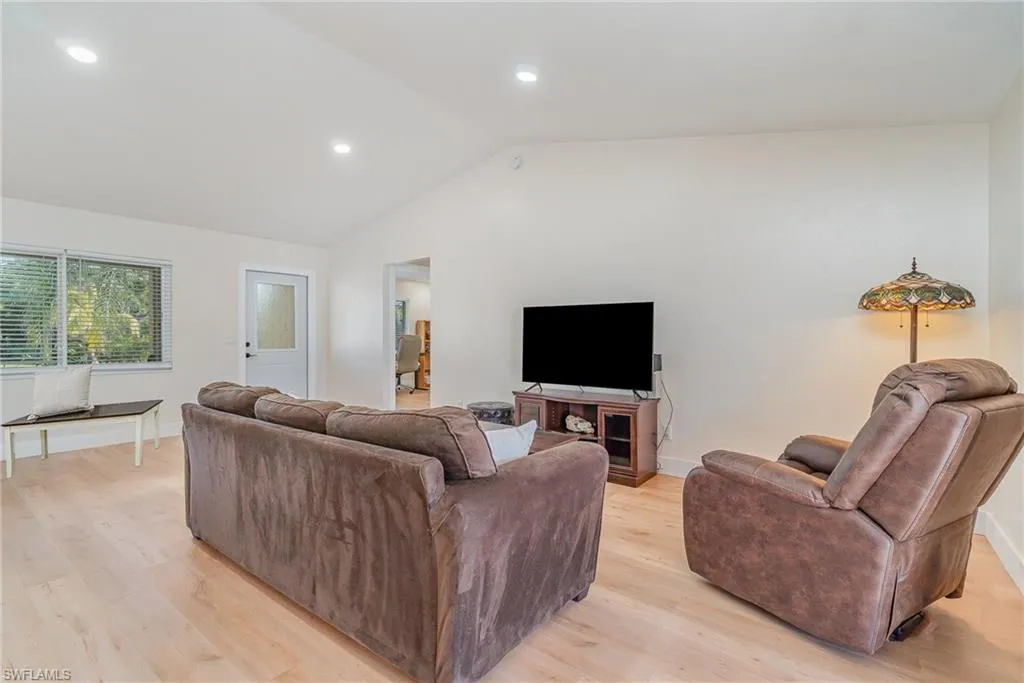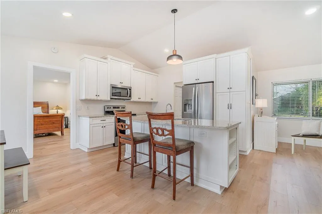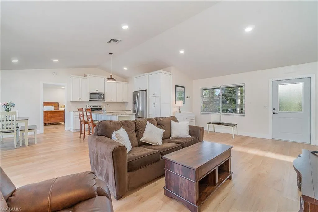 Inside, the home feels bright and open, with new doors, wide baseboards and trim throughout, luxury vinyl plank flooring in every room, and modern canned lighting. The custom kitchen is a standout feature, with real wood cabinetry, quartz countertops, soft-close doors and drawers, and soft-close pull-out shelves in both the pantry and lower cabinets—providing beauty, functionality, and ample storage. Additional storage in the garage and mudroom keeps everything organized and practical. Mature trees, spacious lots, and character-filled homes give the neighborhood timeless appeal. Located west of US-41 with no HOA, no rules, and only county taxes, you’re minutes from Coconut Point Mall, Bonita Beach, RSW Airport, Saltleaf Golf Preserve, the upcoming marina, and waterfront dining.