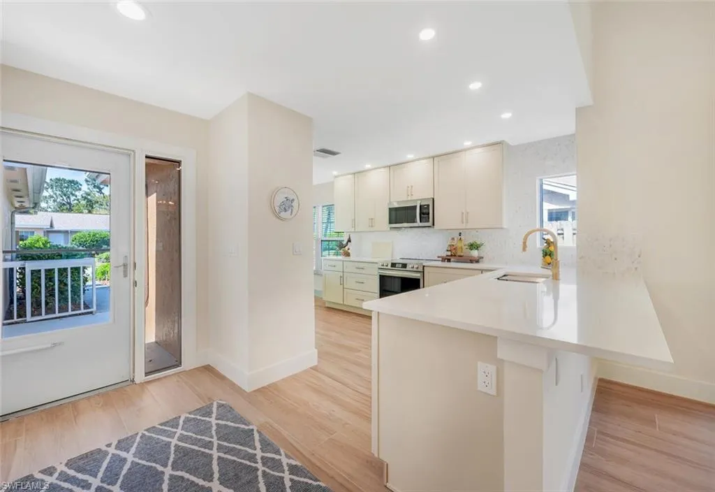 COMPLETELY RENOVATED LAKESIDE VILLA WITH EXPANSIVE SOUTHERN VIEWS! Experience lakeside living at its finest in this beautifully renovated two-bedroom, two-bath attached villa in the desirable community of Lakeside. Enjoy stunning southern exposure overlooking one of Naples’ largest and most picturesque lakes, offering tranquil water views and spectacular sunsets. This move in ready villa is offered furnished and features a modern open layout, vaulted ceilings, stylish modern finishes and abundant natural light. The kitchen showcases all new cabinetry, quartz countertops, and stainless steel appliances, while both baths have been completed redesigned with todays upscale finishes. This neighborhood is a gated community is in an excellent location close to everything Naples has to offer, including beach access, shopping, dining, golf, entertainment. A perfect blend of modern comfort, coastal tranquility, and convenience, this villa is ready for you to enoy from day one. Low quarterly maintenance fees! Single family ownership.
