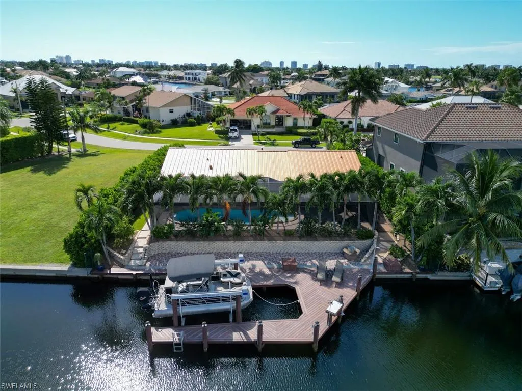 Perfect for entertaining or unwinding, the expansive lanai features modern ”picture window” screens and a newly resurfaced pool with a variable-speed pump and heater, surrounded by lush tropical landscaping. Enjoy evenings by the firepit on the patio overlooking the water, or take advantage of the modern plumbed and electrified boat dock with a 13,000 lb lift.