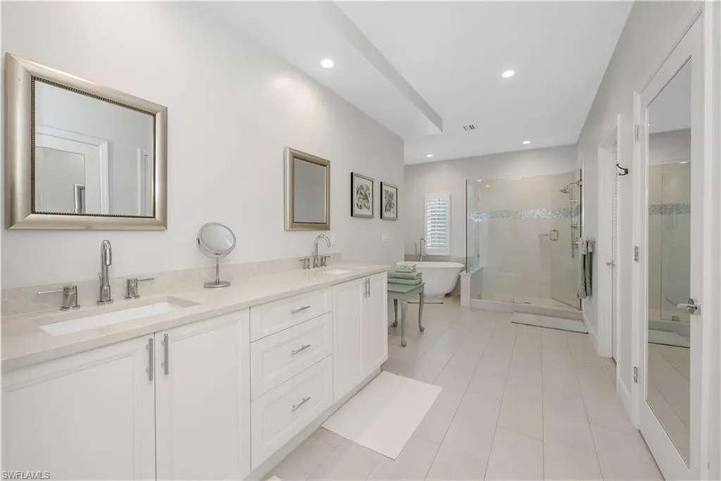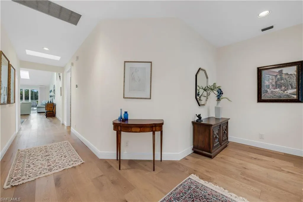 Beautiful long lake and golf course view. We are proud to feature this renovated, spacious 3 bedrooms, 3 bath home which features nearly 3000 square feet of under air conditioning living space! Located on the 6th hole of the Wyndemere Gold Course. The lanai features a swimming pool and spa with spectacular views. As you walk through the entrance of the home, you will immediately notice the contemporary feel highlighted by white oak wood flooring. Three skylights bring a warmth to the great room and a well placed center island features a wine refrigerator. The primary suite includes sliding doors to the lanai, walk-in closet and recently refurbished bath area. The second floor offers a second primary suite, approximately the same size as the primary suite, along with a renovated bath area with both a shower and a separate free standing tub. The third bedroom/den also includes its own au-suit. An oversized kitchen features stainless steel appliances and ample counter space. Wyndemere Country Club has been awarded the Platinum Club statis and is conveniently located minutes to the beach and downtown Olde Naples. Wyndemere offers a 27-hole golf course which was designed by Arthur Hills, 10 Har Tru tennis courts, 7 pickleball courts, bocce, croquet, fitness center and restaurants.