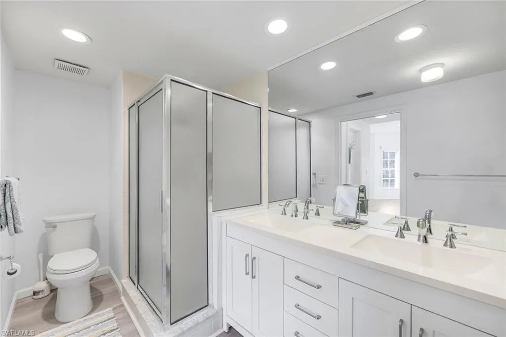 This unit has tons of updates and upgrades. Most furniture can be included if buyer chooses. Wonderful spacious residence with serene coastal decor that creates a calm retreat with sparkling lake views. There are 2 screened lanais allowing coastal breezes to flow through. The beautiful luxury vinyl wood plank flooring has warm tones. The new kitchen has white shaker cabinetry, quartz counters, stainless steel appliances and a tray ceiling with accent lighting and crown molding. This modern design has the popular open shelving concept and glass cabinetry. A large pantry closet has enough extra space for storing your small appliances too. The owner’s suite has lovely lake views, large walk-in closet and vanity with dual sinks, quartz counters and a separate shower and soaking tub. The guest bedroom has ample closet space and a refreshed bathroom with new cabinetry and quartz counters. The main lanai has storm shutters and gorgeous lake views. The second lanai off the kitchen has colorful skies at sunset and has storm shutters too. It is an easy walk to the community pool and hot tub. Chardonnay is nestled in the highly sought after neighborhood of the Vineyards. Close to a large variety of shopping, dining, Naples’ white sandy beaches, medical facilities and I-75 for traveling. This one checks all the boxes.