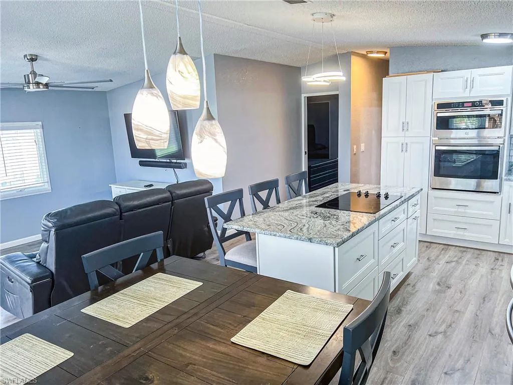 Welcome to your tropical oasis — a completely renovated 2-bedroom, 2-bath home where every detail shines. Bask in the coastal breezes from your brand-new (2024) expansive screened porch, the perfect spot for morning coffee or sunset relaxation. Inside, discover all-new water-resistant LUP flooring throughout and a stunning kitchen featuring shaker-style soft-close cabinetry, granite countertops, a huge center island, and brand-new stainless steel appliances — including a double oven and range-top stove. Enjoy peace of mind with all new plumbing, a tankless water heater, updated electrical wiring, switches, and outlets, plus new ceiling fans and lighting. The freshly resurfaced walls and ceilings, elegant trim, and all-new furnishings create a bright, modern feel. Retreat to the enlarged master bathroom, beautifully renovated for comfort and style. Two new exterior doors, a large utility room with washer, dryer, and extra storage. This home is truly move-in ready — no projects, no worries, just pure Florida living. Located in a pet-friendly, 55+ community with a heated pool, hot tub, shuffleboard courts, and regular social events, you’ll enjoy an active yet carefree lifestyle. Plus, the low quarterly HOA of just $432 covers water, sewer, cable, trash removal, and lawn care. Best of all, this is owned land — no lot rent! You’re just minutes from beaches, restaurants, shopping, and everything Southwest Florida has to offer. Step into your new home and start living the sunshine life today! Home age is 1994 — LEEPA has the old home listed on file.