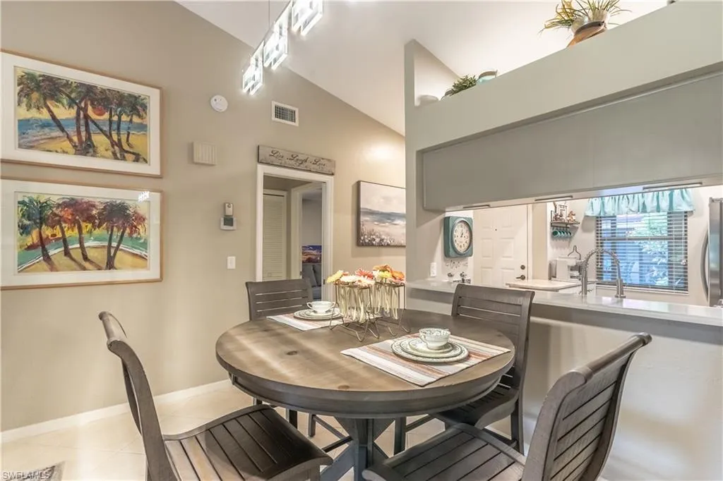 Comes with your own deeded covered parking spot with storage unit, just steps off the front of the Condo. 2 Bedroom and 2 Bath with a gorgeous Southern Exposure with a Beautiful Lake view with Lush Landscaping and well maintained yard. A Grill is allowed in the back of your property. The Pocket door for the guest room allows for a private guest suite. Primary Master bedroom suite the Bathrooms have Granite counter Tops and Dual updated vanity and shower with a new Toilet too. Guest bathroom has Granite updated Counter Tops also with a new vanity and updated tub. Beautiful Diagonal Tile throughout the home and flows beautifully as it extends to the Lanai to the Florida room. The roofs were replaced with gutters in 2022. A paver deck can be added to the rear up to 10 FEET and the width of the Condo. Brand new $ 10,000 remodeled Kitchen with Quartz Counter Tops and Stainless Steel Appliances with beautiful stylish back splash the Bubble wall to accent the kitchen decor. New A/C- 2018, New Hot Water Heater-2025, updated plumbing, Freshly painted throughout Condo. Front Lanai is HUGE and screened in with privacy for your morning coffee or a beverage of choice in the evening. 100 Feet from the Condo is the community Pool, Sauna, Hot Tub to relax or socialize with the neighbors on any given day. Very quiet community and well kept Yard care. Just minutes to 5th Ave and the world class Beaches Naples has to offer. Great Restaurants and high-end shops just 10 minutes away. Welcome Home !
