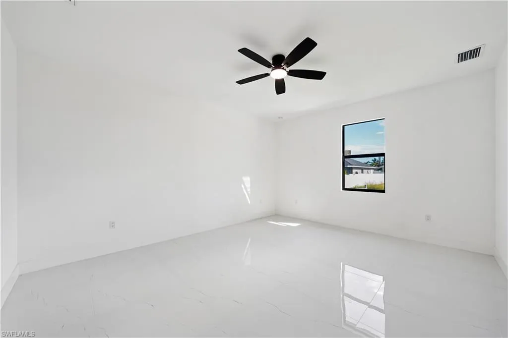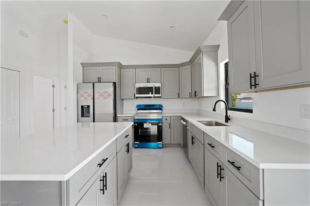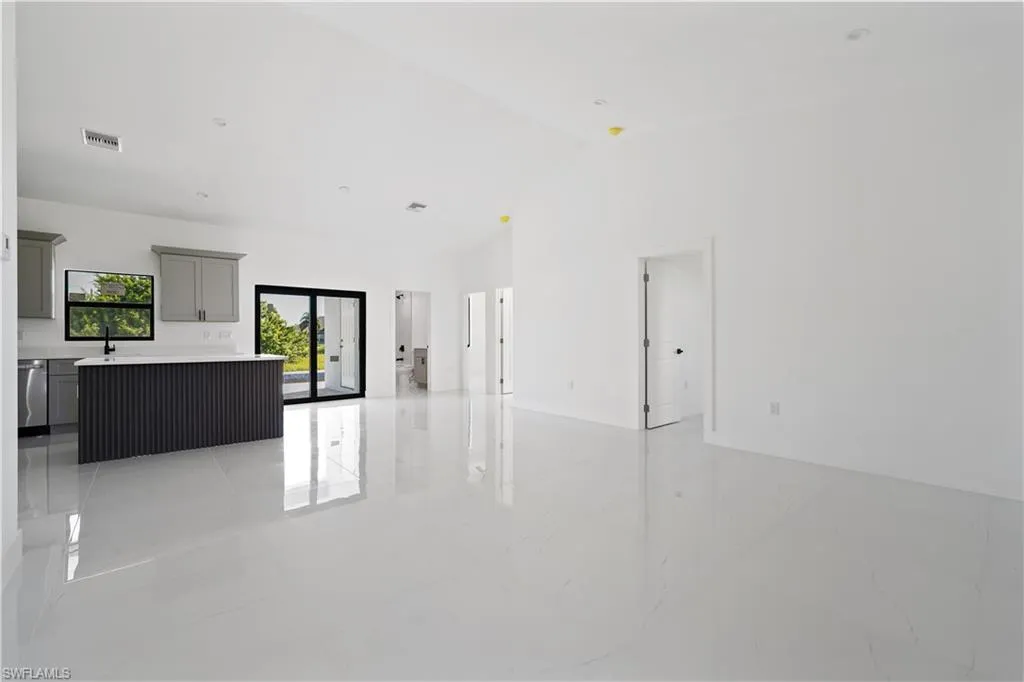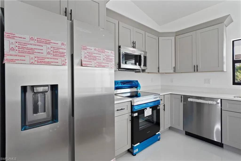 Spectacular 4 Bedroom 2 Bath, and two car garage. CBS NEW CONSTRUCTION Home is in a desirable neighborhood of Cape Coral. Plenty of living room space with High Ceilings and a marvelous Open Floor Plan Kitchen with upgraded cabinets and countertops. All Windows and Doors are top-quality Hurricane impact-resistant. The master bedroom is large, with plenty of closet space and a large bathroom. All Rooms are spacious and have excellent storage space. The home’s patio features a pool and a large backyard. Open concept design is perfect for entertaining and creating lasting memories with your loved ones. The kitchen is a chef’s dream, with modern stainless steel appliances, beautiful countertops