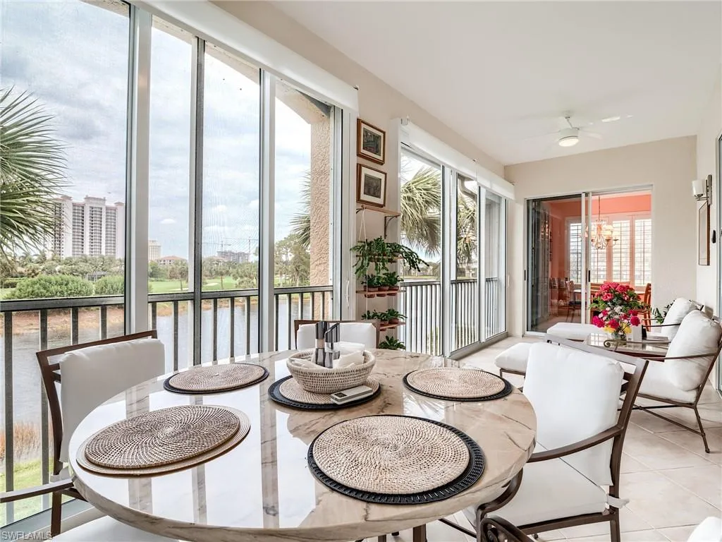 COME SEE THIS PRISTINE 2ND FLOOR CONDO WITH AN AMAZING LAKE AND SUNSET VIEW! Price was reduced by $86,000. From the moment you step into the grand entryway adorned with a stunning glass blown chandelier, you’ll be captivated by the elegance and functionality of this residence. The ever- popular Dorchester floor plan, is truly immaculate and pristine and is one of the most popular and livable layouts situated in the highly sought-after Merano community of The Colony Golf & Bay Club. Spanning 2,748 square feet, air-conditioned area this meticulously maintained 2nd-floor coach home boasts 3 en-suite bedrooms, a versatile den, and a bonus flex room perfect for a home office. The thoughtfully designed split-bedroom layout ensures privacy for all, while upgraded features and elegant finishes make this home truly extraordinary. Juliet balcony off the front guest bedroom offers great privacy to the favorite guest! . The chef’s kitchen is a masterpiece, featuring quartz countertops, an island, custom cabinet rollouts, and a wet bar, complemented by plantation shutters in the kitchen, den, and primary suite. Quartzite countertops grace all three bathrooms, offering both style and durability. The lanai, seamlessly connected to the living room through sliding glass doors, offers breathtaking western-exposure views of the serene lake and vibrant wildlife and is the most majestic views of towers in The Colony. It beautifully integrates indoor and outdoor living, inviting you to savor morning wildlife and tranquil evening sunsets! Brilliantly located where the corner kitchen dining windows are not blocked by the building next door- this is the best view on the street!!inviting you to savor morning sunrises and tranquil evenings. Additional upgrades include an advanced A/C system, premium carpet and padding, and a spacious, oversized two-car garage with built-in cabinets and room for a work bench. A private elevator that you share with no one ensures effortless access to this second-level retreat. Merano has undergone a community-wide stunning transformation, new exterior paint, flat tile roofs, updated pool furniture, modernized lighting and new door hardware. The neighborhood it looks better now than when it was first built!! As a resident of The Colony, you’ll enjoy access to world-class amenities, including the recently renovated Bay Club with waterfront dining on two levels, a private 34-acre island beach park, a kayak and canoe launch, a fitness center, and tennis and pickleball courts. For golf enthusiasts, optional golf and sports memberships at The Colony Golf Club are available. Between the Merano amenities plus the Colony and Bay Club as well as Pelican Landing’s amenities you have the greatest array of Amenities of any community in the area. Located in a historically storm-resilient area with no damage from recent storms. The Colony at Pelican Landing offers an unparalleled lifestyle, making this property the perfect place to call home.