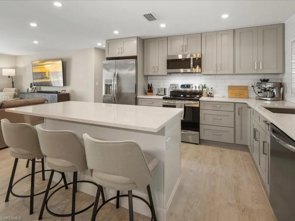 Very unique “LIKE-NEW” offering in the desirable Shenandoah Estates neighborhood, this fully renovated 2 bedroom/2 bathroom residence absolutely checks all the boxes! Renovation includes: FULL KITCHEN REMODEL (fully opened to dining and great room) including real wood soft-close shaker cabinetry, quartz countertops, stainless steel sink, subway tile backsplash, and stainless steel appliances. MASTER AND SECOND BATHS REMODELED. Renovation also includes: ALL IMPACT DOORS AND WINDOWS INCLUDING SLIDER, SECURITY SYSTEM ON ALL WINDOWS AND DOORS WITH CAMERA, NEW TILE FLOORING THROUGHOUT, REMOVAL OF POPCORN CEILING, REWIRE OF ENTIRE HOME – INCLUDING NEW ELECTRIC PANEL and is GENERATOR HOOKUP-READY. NEWLY EXPOXIED GARAGE FLOOR AND INSTALLED MINISPLIT AC TO BRING THE ENTIRE GARAGE SPACE UNDER AIR! FULL INTERIOR PAINT, LED LIGHTING THROUGHOUT ENTIRE HOME, ALL NEW AC DUCT WORK, NEW INSULATION, NEW SCREEN CAGE AND SCREENING OF LANAI, NEWER WATER HEATER, NEW BLINDS AND DRAPERY, NEW CEILING FANS, NEW LANDSCAPING, FULL EXTERIOR PAINT, NEW GUTTERS ON REAR OF HOME, NEW GARAGE SERVICE DOOR, and NEW ROOF IN 2017 and AC 2017. ALL FLOORS WERE PROFESSIONALLY CLEANED AND SEALED IN 2025. This total cream puff is ready for the discerning buyer who appreciates the pride of ownership that comes with this amazing property. Conveniently located just 2 minutes to 41, and excellent proximity to downtown Naples and the beaches, and also to Marco Island. Amazing value for a “LIKE-NEW” residence in Naples for under $500,000! Don’t miss out – schedule your private showing today!