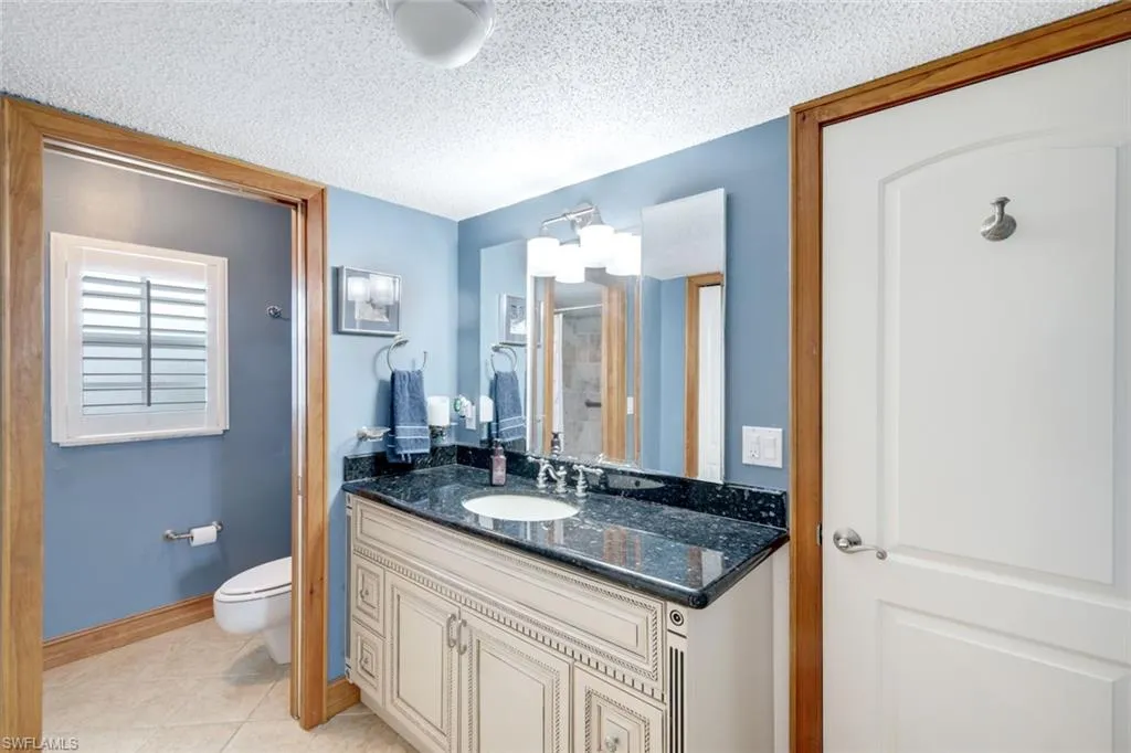 Welcome to Stratford Place, a beautifully maintained 55+ community that captures the best of Southwest Florida living! Perfectly located just minutes from the pristine beaches of Fort Myers, Sanibel, and Captiva, this spacious condo offers easy access to endless shopping, dining, and entertainment options. With over 2,700 square feet of living space, this thoughtfully designed residence features three bedrooms and three full bathrooms, each with its own private en suite. The open kitchen is perfect for entertaining and includes granite countertops, stainless steel appliances, and plenty of cabinet and counter space. Recent updates include hurricane-impact windows and doors, two new air-conditioning units installed in 2022, and a brand-new roof completed in 2023. There is no shortage of storage with multiple interior closets and two large exterior storage units. A flexible layout allows for a variety of living arrangements, including a private mother-in-law suite or guest retreat. This area features a private entrance, a comfortable living space, and a wet bar, providing convenience and privacy for guests or extended family. The oversized balcony offers the perfect spot to unwind and enjoy picturesque water views with stunning western exposure sunsets. The Stratford Place community is built around a charming island oasis featuring a heated pool and clubhouse for social gatherings, along with lakeside amenities such as shuffleboard and BBQ grills. Residents also enjoy elevator access and grocery carts for added ease. For peace of mind, this home had no flooding during recent hurricanes. Stratford Place offers the perfect blend of comfort, community, and convenience. Call today to schedule your private showing!