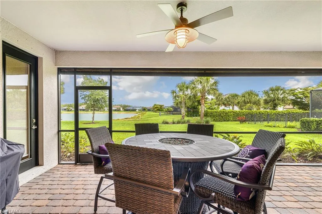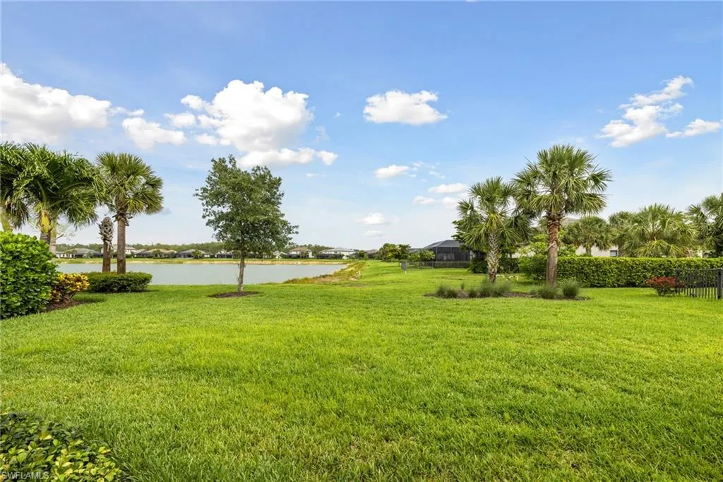 Florida living at its finest! This stunning 3-bedroom + Den, 2-bath home with a 3-car garage offers peaceful water views, open-concept luxury, and access to one of the most amenity-rich communities in Southwest Florida. From the stylish interior finishes to the shaded lanai perfect for morning coffee or evening sunsets, every detail is designed for comfort and lifestyle. The bright and airy layout flows effortlessly from the great room into a beautifully updated kitchen featuring white cabinetry, granite countertops, upgraded appliances, custom built-ins, and plank tile accents on the island. Crown molding, decorative lighting, porcelain tile floors, and powered shades on the sliders add both elegance and convenience, while accordion shutters and storm screens provide lasting peace of mind. The northern rear exposure offers ideal shade for relaxing outdoors and taking in the tranquil water view. This home has been thoughtfully updated with fresh interior paint completed in July 2023, new gutters installed around the entire house, and a completely replaced kitchen backsplash that brings a modern touch to the heart of the home. Under-cabinet lighting has been added to enhance both style and functionality in the kitchen. The 3-car garage is equipped with its own A/C unit, creating a comfortable environment for hobbies, a workshop, or extra storage space. The fourth bedroom has been expertly converted into a private home office, perfect for remote work, creative pursuits, or quiet productivity. Located in the highly desirable gated community of The Place at Corkscrew, residents enjoy an unmatched lifestyle with resort-style amenities including a massive pool with 100-foot waterslide and spa, indoor restaurant, outdoor bar, bourbon bar, café, full fitness center, movement studio, tennis, pickleball, bocce, basketball, a playground, dog park, and full-service spa. With low HOA fees and a brand-new Publix just minutes away, this is the ideal opportunity to enjoy the very best of the Florida lifestyle in a home that truly has it all.
