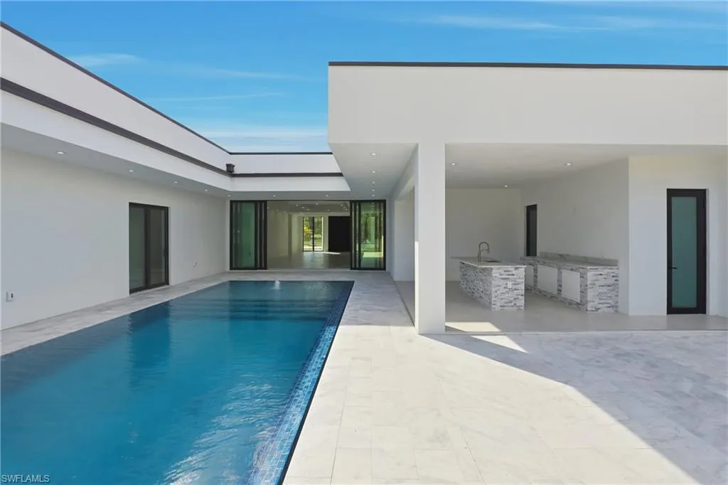 Discover this sensational modern estate in the highly desirable Golden Gate Estates community. Offering over 6,466 sq. ft. of living space on 2.81 private, fenced, and gated acres, this property is a serene retreat that perfectly blends luxury, design, and privacy. This custom-built masterpiece was crafted with exceptional attention to detail, featuring 4 spacious bedrooms, 4 full bathrooms, a chef inspired kitchen, and a striking glass enclosed wine cellar the perfect mix of sophistication and comfort. From the grand pivot wood door to the expansive impact windows that fill the home with natural light, every detail has been thoughtfully designed to connect indoor and outdoor living. The open-concept layout is ideal for both entertaining and everyday living. The primary suite offers a true spa like experience with a walk-in shower, dual vanities, a smart toilet, and custom wood cabinetry with quartz countertops. Conveniently located near the upcoming Vanderbilt Road Extension, this home provides quick access to the best of city life and the beaches just 20 minutes away. Experience unmatched tranquility, architectural elegance, and modern luxury the perfect place to call home.
