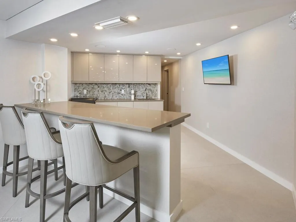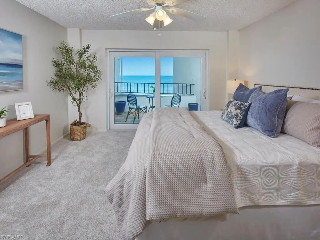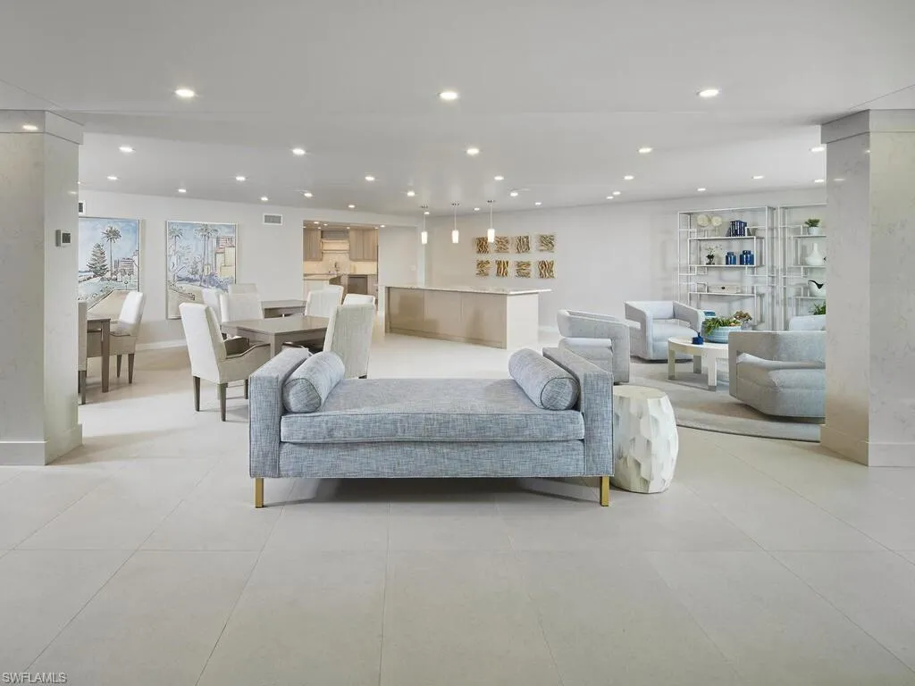 A sweeping panorama of the Gulf sets the tone at Horizon House, where convenience meets effortless coastal elegance. Just under 1,800 square feet, this refined yet relaxed residence opens with an elegant foyer to a sun-filled living room framed by floor-to-ceiling sliders and a covered balcony—an invitation to savor serene sunsets and the hush of the waves. The kitchen flows seamlessly to the dining area so Gulf views accompany every meal, while the private owner’s suite features wide water vistas, a walk-in closet, and an en suite bath. A second bedroom offers welcomed privacy for guests, and the covered balcony becomes an outdoor salon for morning coffee or sunset cocktails.Set upon the sugar-sand of Park Shore Beach and moments from Venetian Village, Horizon House pairs exclusivity with ease—think convenient parking, a sparkling pool with generous patio, community room, and fitness center. An added note of confidence: no water intrusion during recent tropical storms.