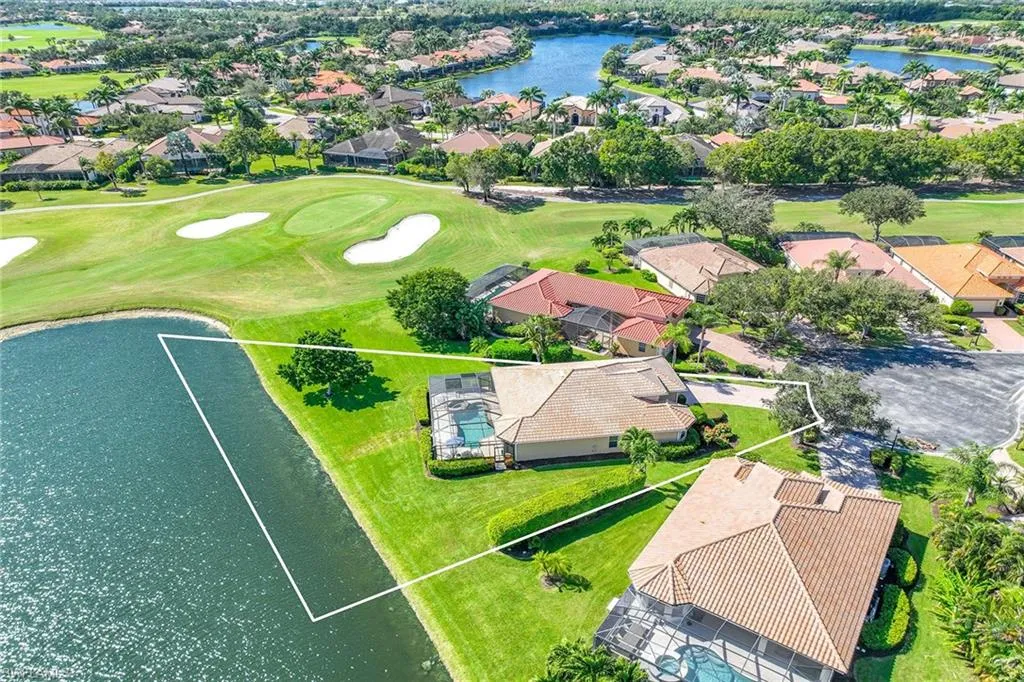 Sunlight, sweeping water views, and endless outdoor enjoyment define this exceptional home in Masters Reserve. Perfectly positioned at the end of a quiet cul-de-sac, this oversized pie-shaped lot lines up the most prized combination in Lely Resort: long lake vistas paired with the backdrop of rolling golf course grounds. Every moment outdoors feels like a private postcard. Step inside and the experience continues to stretch outward. Wide sliders open the main living spaces directly to the lanai, making the outdoors a natural extension of everyday living. The popular Augusta layout delivers comfortable flow and effortless privacy with three bedrooms, two baths, and a spacious two-car garage. Outside is where this home truly shines. A large covered outdoor living area invites year-round dining and lounging, all cooled by gentle breezes from the water. The heated pool and spa transform relaxation into a daily ritual, while southern exposure bathes the entire setting in warm natural light from morning to sunset. Entertaining feels easy, serene mornings feel sweeter, and every view is a reminder of why you chose Southwest Florida. Ownership includes optional membership to the award-winning Player’s Club & Spa, offering resort-style pools, multiple dining options, a modern fitness facility, spa services, and every game you could imagine including tennis, pickle-ball, and bocce. Social events, friendly neighbors, and modest HOA fees round out a lifestyle that feels like vacation. A rare offering of space, sunshine, and scenery. Experience the outdoor Florida living you’ve been dreaming about in the heart of Lely Resort.